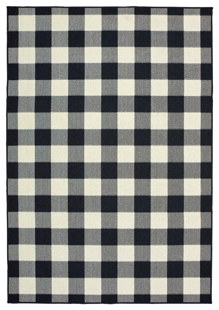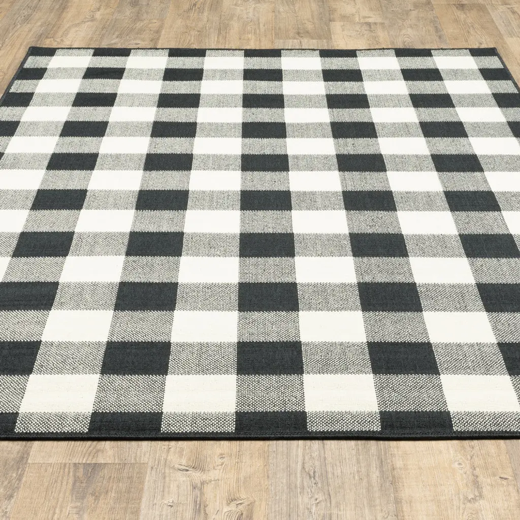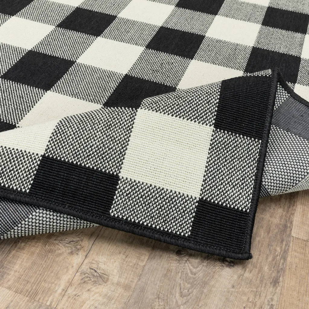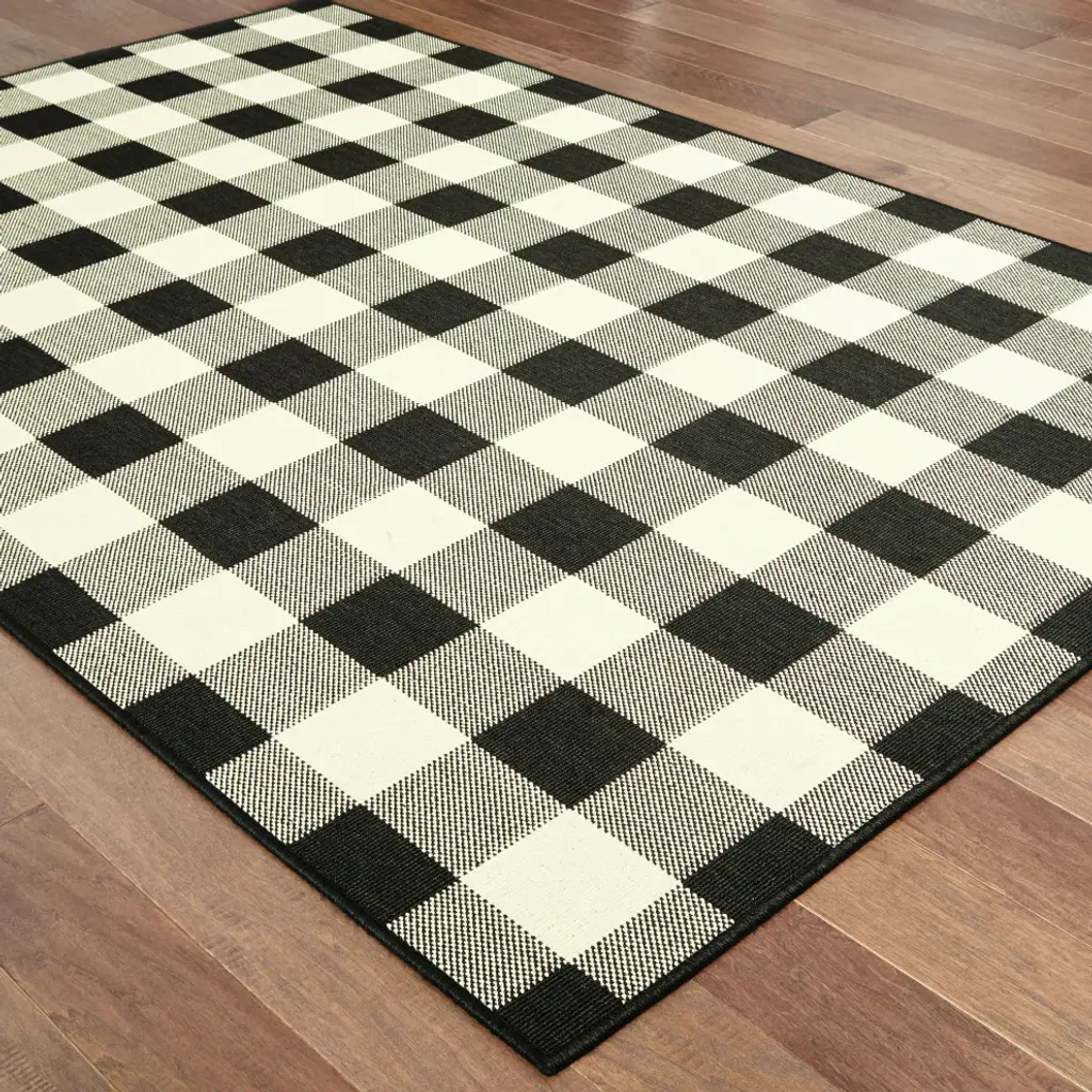 Martinique Gingham Check Black/ Ivory Indoor/outdoor Area Rug, 5'3"x7'6"