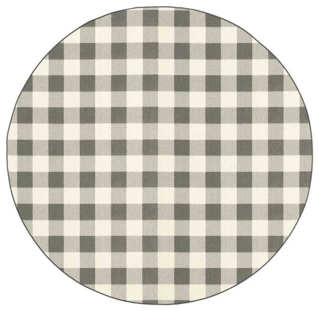 Martinique Gingham Check Indoor/outdoor Area Rug, Grey, 7'10" Round