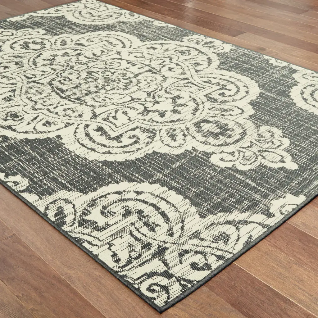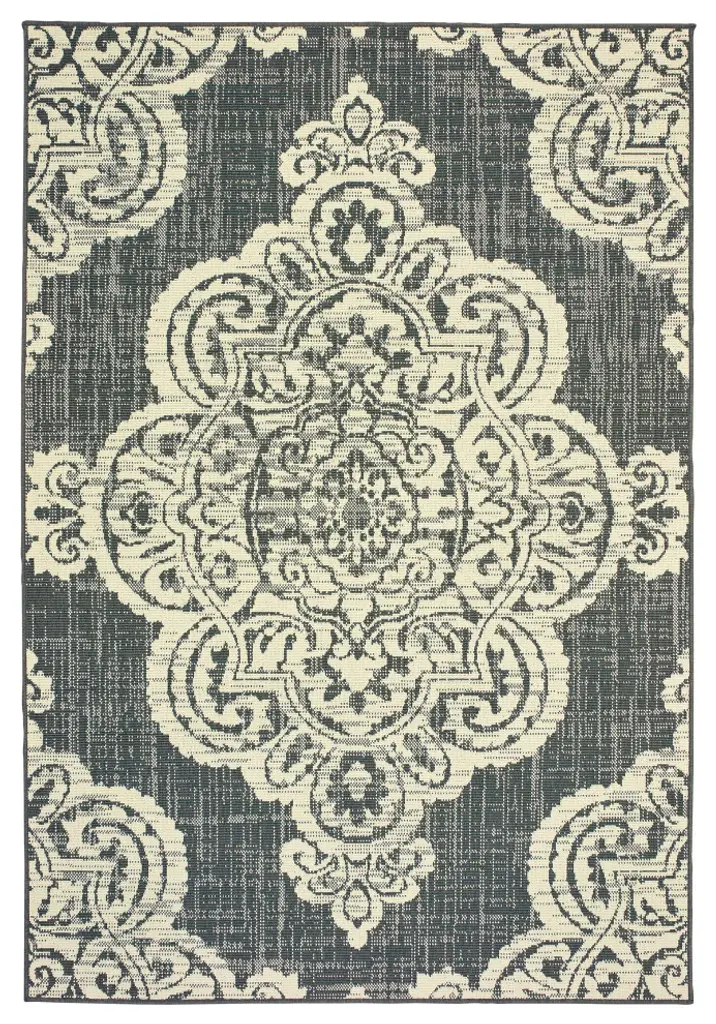 Martinique Overscale Medallion Grey/ Ivory Indoor/outdoor Area Rug, 2'5"x4'5"