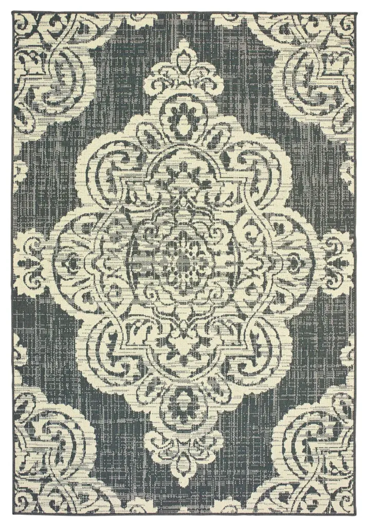 Martinique Overscale Medallion Grey/ Ivory Indoor/outdoor Area Rug, 5'3"x7'6"