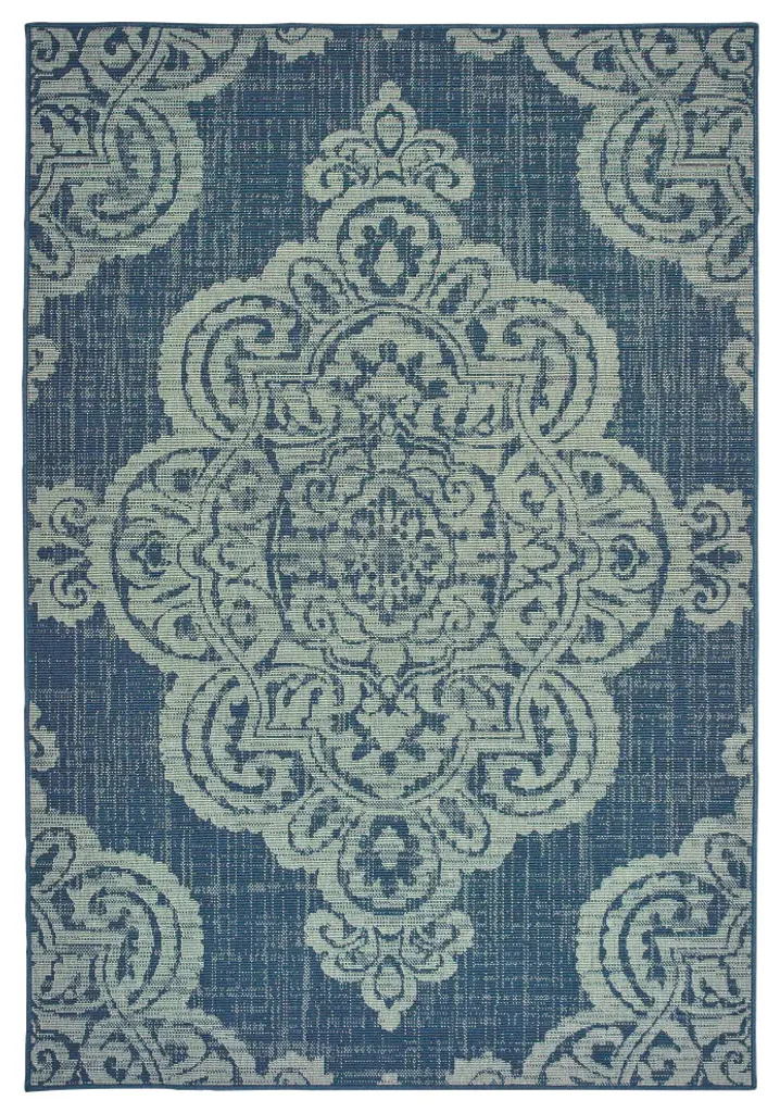 Martinique Overscale Medallion Navy/ Grey Indoor/outdoor Area Rug, 7'10"x10'10"