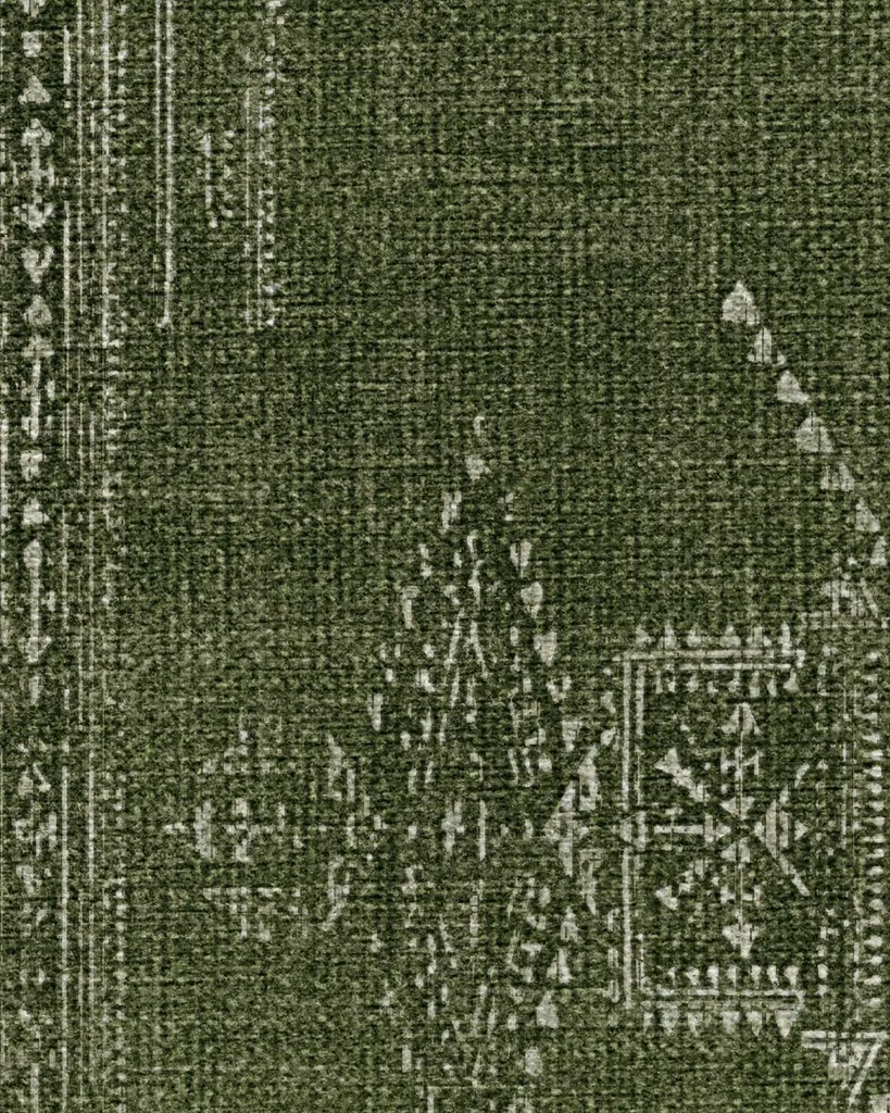 Our Martyn Lawrence Bullard Amira Green Rug is made for gathering. Inspired by simple geometric forms and traditional woven rug layouts, this symmetrical design combines muted elegance and timeless tradition. Using a distressed overall effect for extra character, the light cream motifs, featuring highs and lows, are beautifully set against a dark green background. Water-resistant, stain-resistant, and machine-washable. Rug colors may vary slightly according to your device and the lighting in your space.