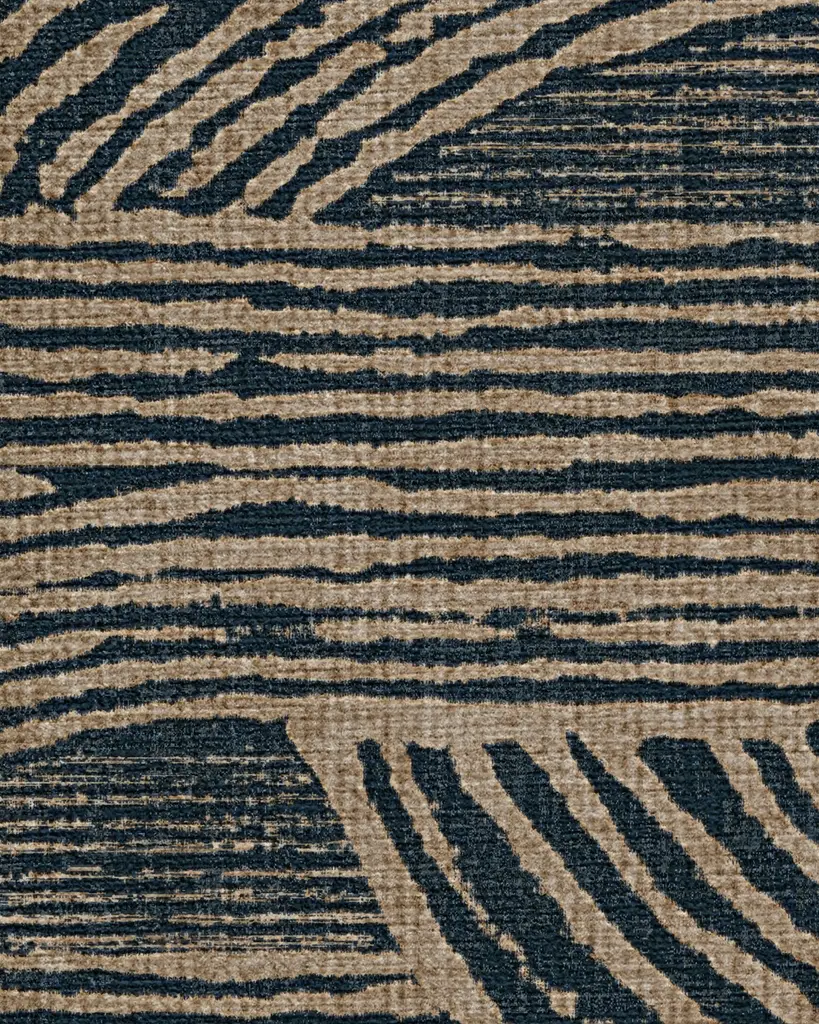 Unlock celebrity style with our Martyn Lawrence Bullard Beni Blue Rug. Featuring textural arches and irregular linework that create a dynamic, organic feel, this large-scale pattern makes a strong statement, combining soft curves with sharp edges. Light warm beige tones delicately stand out against a deep blue background, creating a balance of warmth and depth. Water-resistant, stain-resistant, and machine-washable. Rug colors may vary slightly according to your device and the lighting in your space.