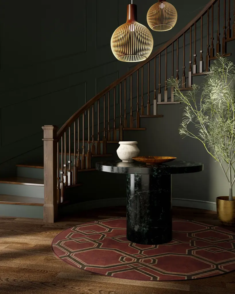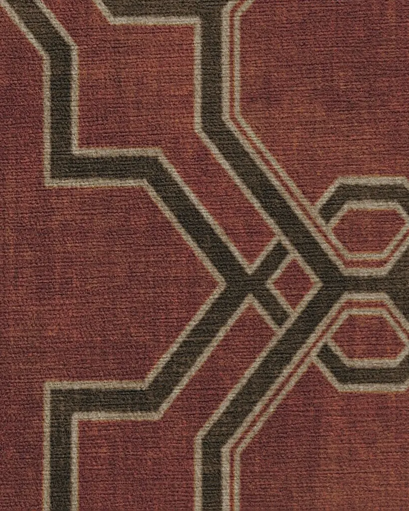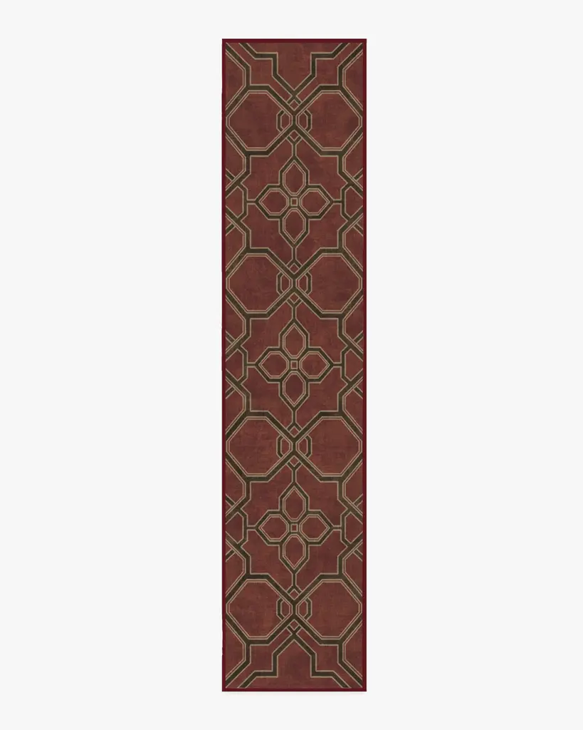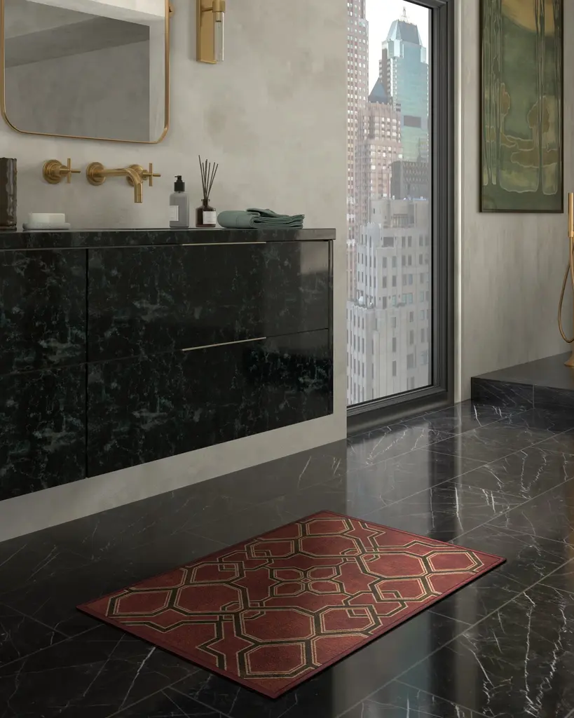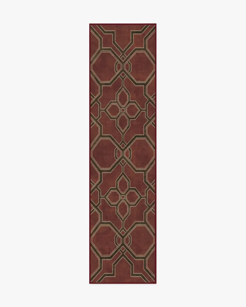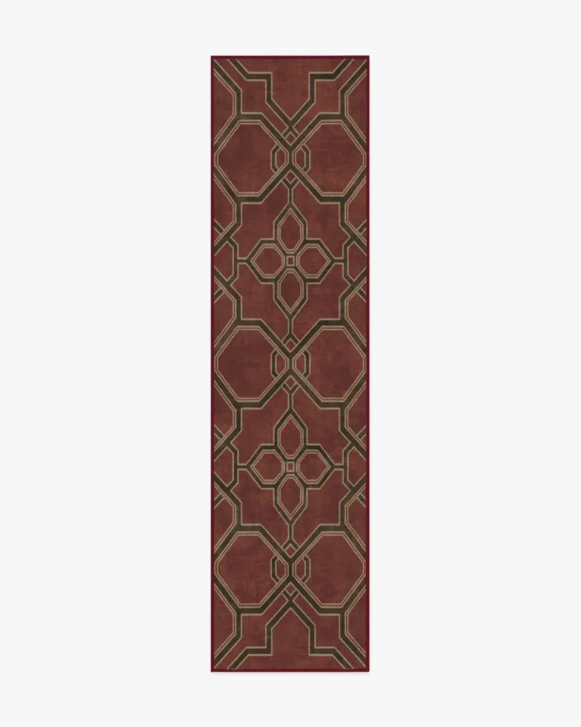 Make a bold, globally-inspired statement with our Martyn Lawrence Bullard Kian Red Rug. This symmetrical design features a large-scale motif spread across the field that commands attention. Featuring simple geometric patterns that add depth and vibrancy against a deep, royal red background, its color palette includes warm charcoals, light gold beige, and light cream tones. Water-resistant, stain-resistant, and machine-washable. Rug colors may vary slightly according to your device and the lighting in your space.