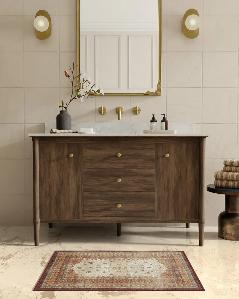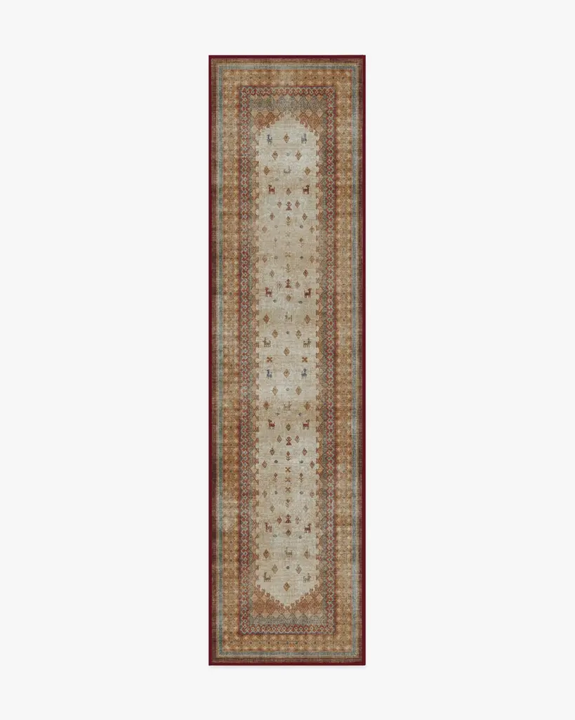 Add a rich, cultural aesthetic to any room with our Martyn Lawrence Bullard Mitra Multicolor Rug. This folk-inspired design is a classic addition to the Martyn Lawrence Bullard Collection, featuring ornate symbols, glyphs, and geometric elements that exude rustic charm. The warm cream, terracotta reds, golds, and touches of blue embellishments create a superbly folky element that is both playful and traditional. Water-resistant, stain-resistant, and machine-washable. Rug colors may vary slightly according to your device and the lighting in your space.