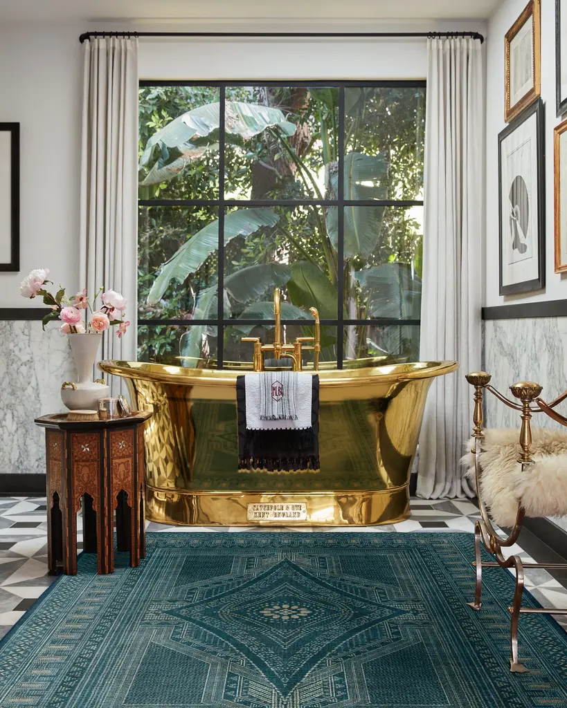 Add elegance and artistry to any room with our Martyn Lawrence Bullard Nomad Blue Rug. Inspired by beautifully designed block prints steeped in indigo, this symmetrical design translates Martyn Lawrence Bullard's Nomad prints into a classic medallion style. The rug, seemingly simple with its hues of blues, creams, and silvers, reveals hidden complexity through intricate details. Dots, dashes, and lines form fine patterns that captivate the eye. Water-resistant, stain-resistant, and machine-washable. Rug colors may vary slightly according to your device and the lighting in your space.