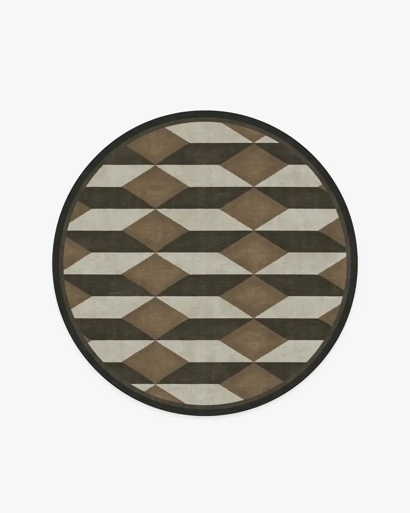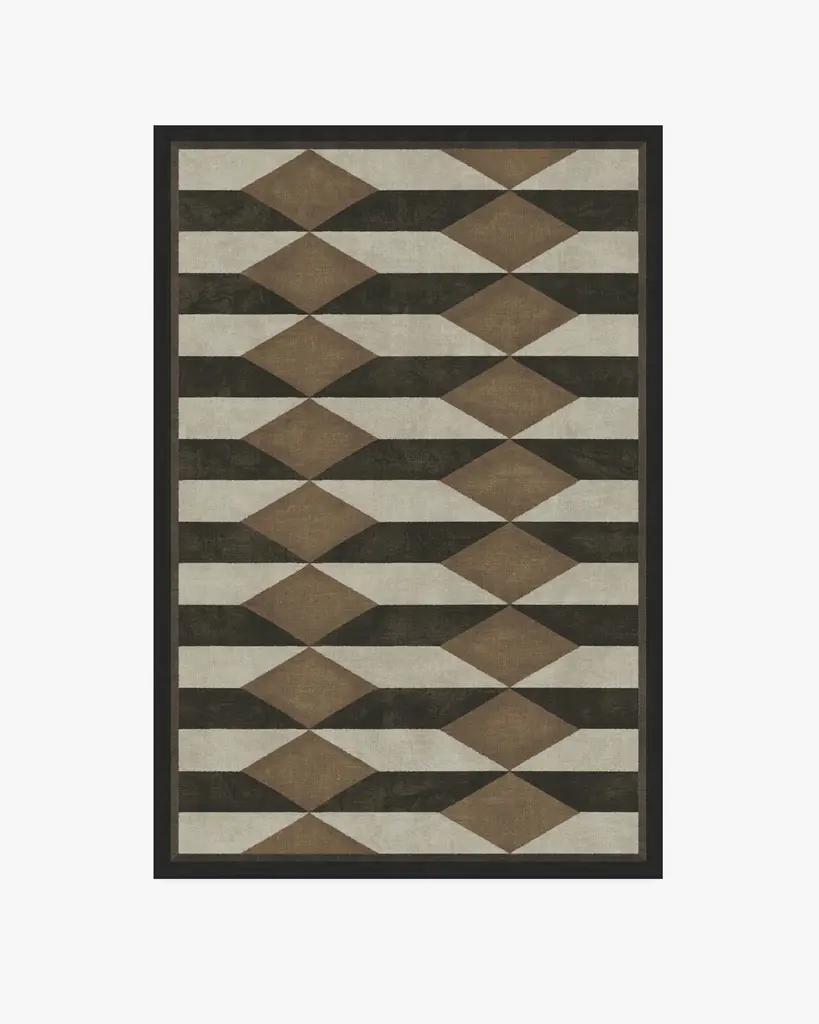Bring home celebrity style made for you with our Martyn Lawrence Bullard Oak Black & Camel Rug. Reminiscent of Italian architect Gio Ponti's iconic tile designs, this symmetrical design features a captivating pattern of trapezoids that shift from warm black to marbled cream, all set against a rustic, camel gold background. The simple yet stylish border enhances the overall optical effect, creating a striking visual centerpiece for any room. Water-resistant, stain-resistant, and machine-washable. Rug colors may vary slightly according to your device and the lighting in your space.