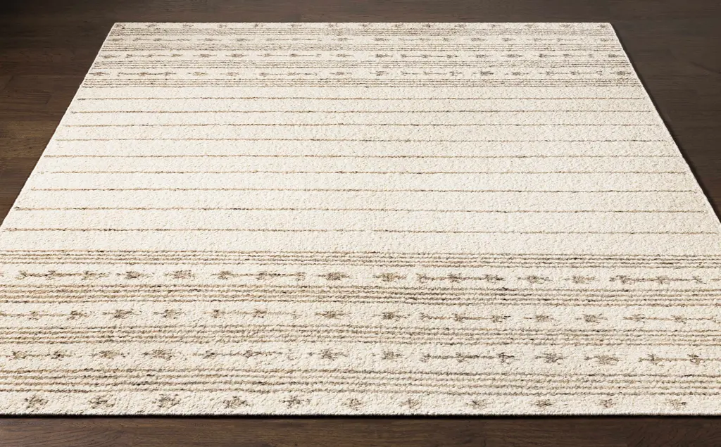 Collection: Matawan Colors: Cream, Charcoal, Black, Ivory, Dark Red, Dark Brown Construction: Hand Woven Material: 90% Wool,10% Polyester Pile: No Pile Styles: Transitional, Bohemian Made In: India Thickness: 0.5" Price Range: $$$$$ (Premium)
