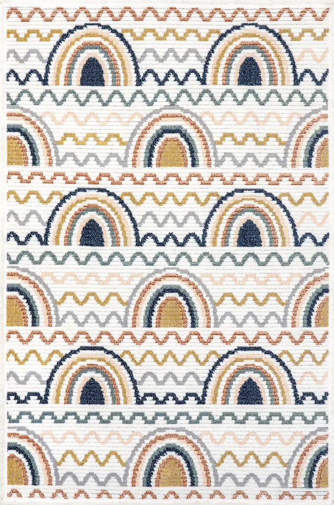 Matilda Kids Spill Proof Washable Double Rainbow Rug | White Multicolor - 7' X 9'