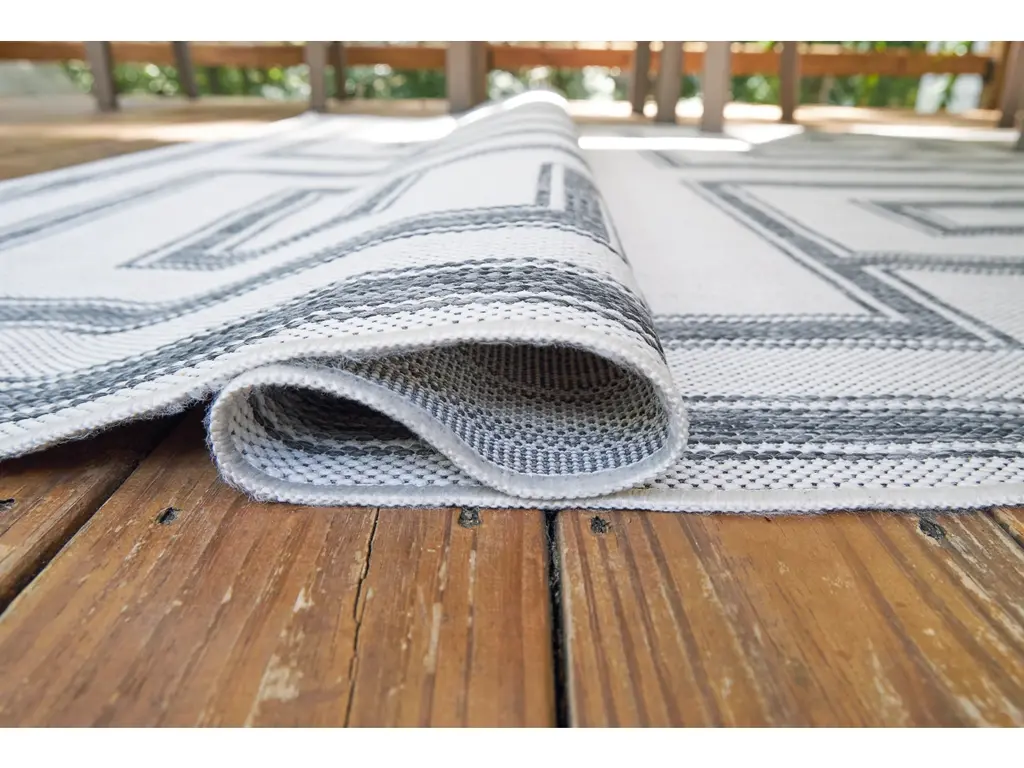 The Matinwood area rug, which boasts a sophisticated Greek key design, exudes timeless elegance. Complementing both indoor and outdoor spaces and crafted for durability, it offers a high-style, low-fuss solution to your flooring needs.