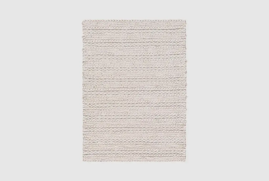 Lay new texture into your design with this handwoven rug. The wool-viscose blend gives it a soft, tactile tread underfoot with simple stripes in a light, tonal palette for brightening up a laid-back curation.