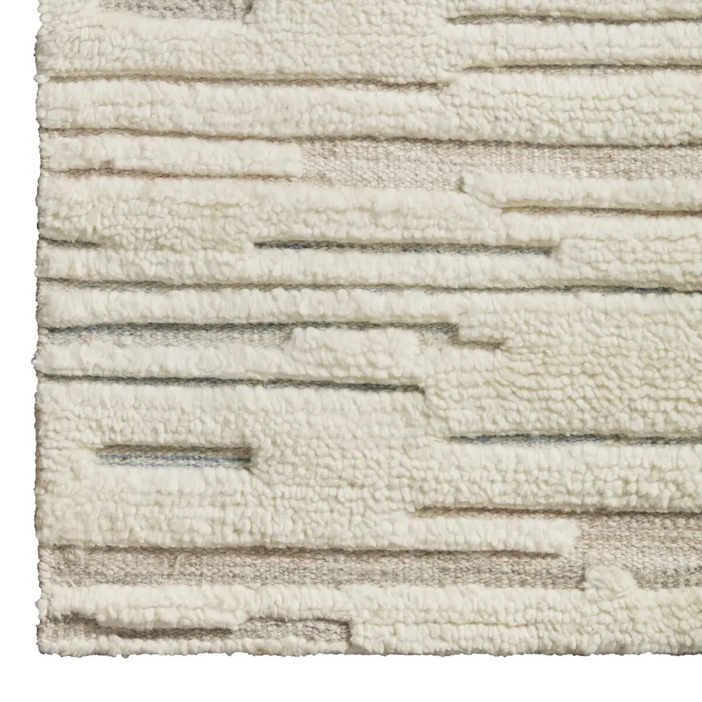 This hand-knotted rug's soft high-low pile makes it as pleasing to walk on as it is to look at. Its neutral palette and fluid motif complement traditional, contemporary, and boho rooms alike. A rug pad is recommended to help prevent slipping and extend the life of the rug.