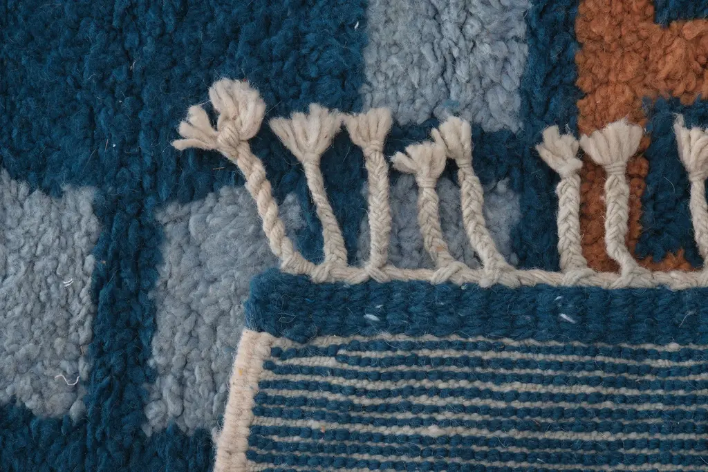 Our Moroccan pieces are each one-of-a-kind. Much of our collection was woven between 30 and 100 years ago, and curated by us. Other rugs in our collection are fresh off the loom and made with traditional techniques. Moroccan rugs don’t come with a key. As with any painting or poem, their motifs have many subjective interpretations. Originally made for personal use, these rugs took months to weave, documenting a shifting tide of events and emotions in the weaver’s life.