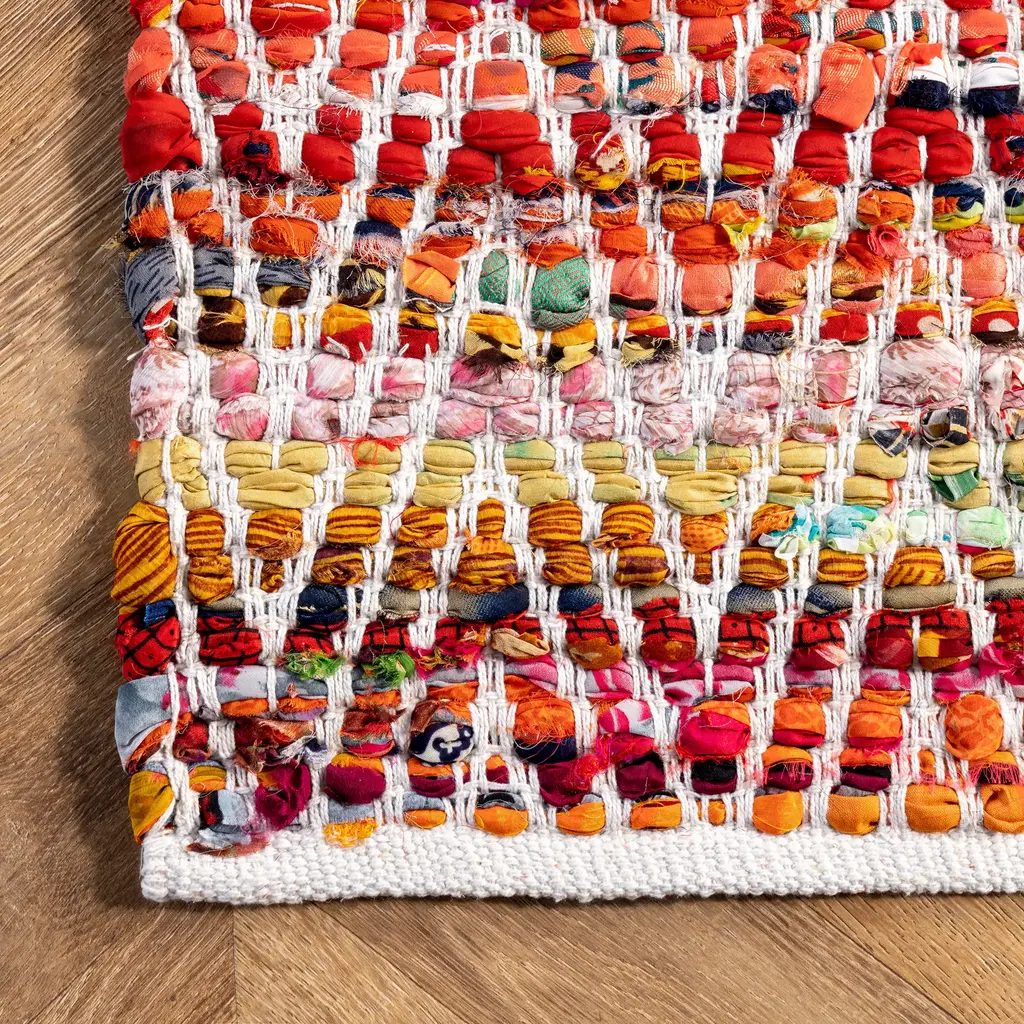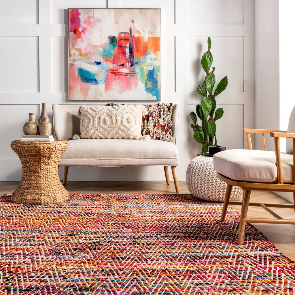 Dress up your floor with this show-stopping, colorful area rug. This hand-woven floor covering features a modern chevron pattern, enriching your area with a fresh ambiance. A piece as versatile as this will easily blend in with any surroundings while being the perfect finishing touch to bring it all together. Make the most of your time at home with our pet-friendly and easy to clean area rugs.