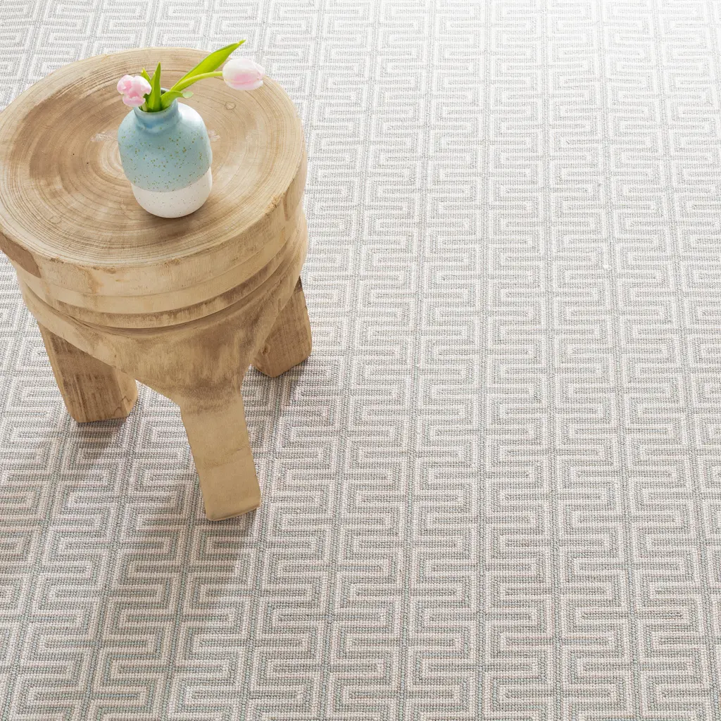 The Maze Woven Wool Custom Rug is designed in a classic motif of interlocking Greek Keys. This rug has a low looped pile and is manufactured with wool and a touch of hard-working nylon. The combination of fibers offers natural warmth and beauty coupled with durability and resiliency. Perfect for high traffic areas.