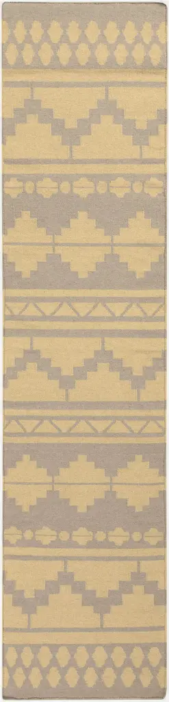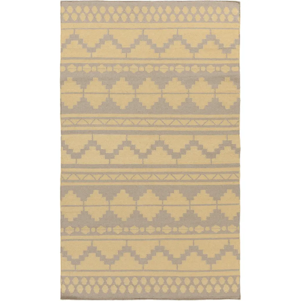 Collection: Mazon Colors: Medium Gray, Mustard Construction: Hand Woven Material: 100% Wool Pile: Medium Pile Pile Height: 0.3" Styles: Bohemian/Global Made In: India Thickness: 0.16" Price Range: $$$$$ (Most Affordable)