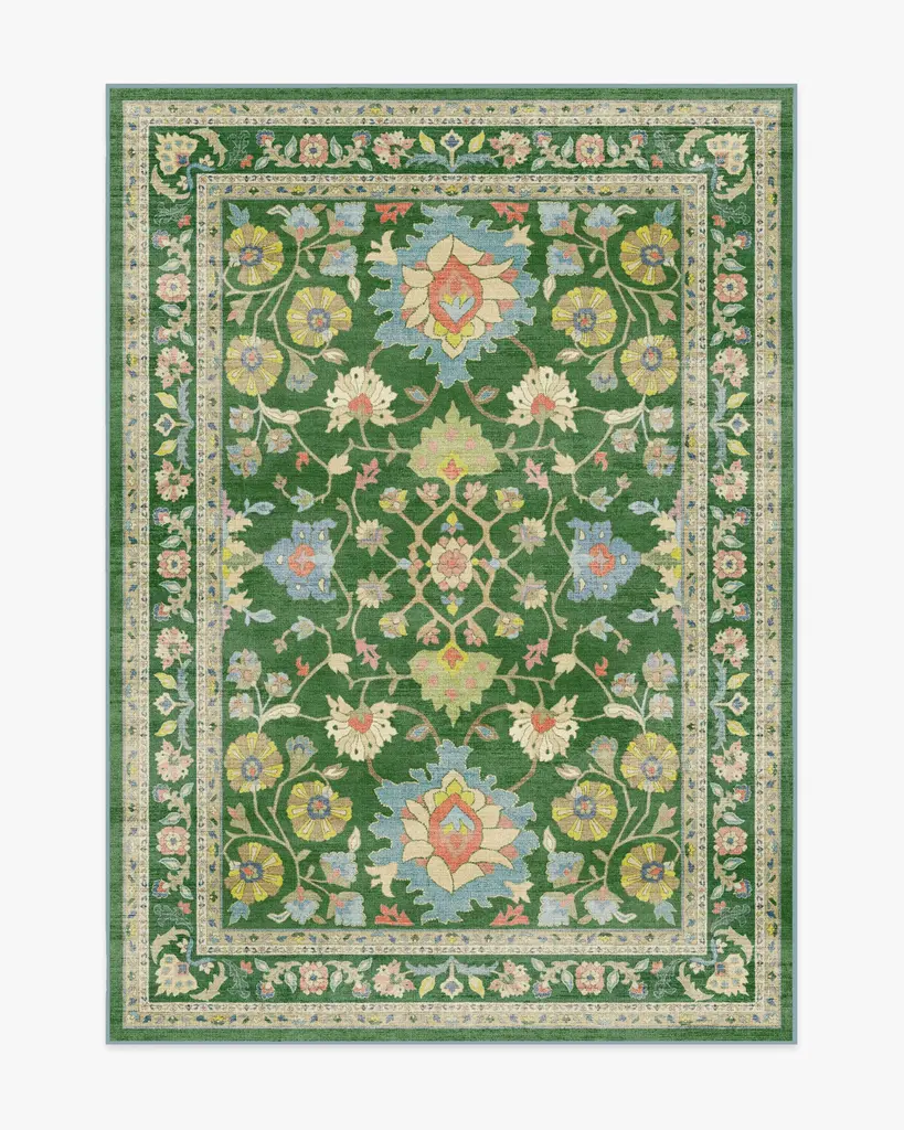 Our Meadow Rug is not only beautiful with its vibrant colors and gorgeous floral design, but it's made of commercial-grade EnduraStran® nylon, so it's durable and fuss-free as well. The design features a botanical border framing an elegant floral background and works wonders to freshen any decor. Ideal for high-traffic areas, like living room, family room, sunroom and even mudroom. EnduraStran is commercially rated for superior durability, and this rug is fade-, fire- and stain-resistant. Serged edges provide long-lasting wear and reduced fraying. Easy to care for with vacuum and spot cleaning with water as needed. Low pile is approx. ⅓"H. Sizes are approximate. Can be used with a rug pad. Quality-made in USA.