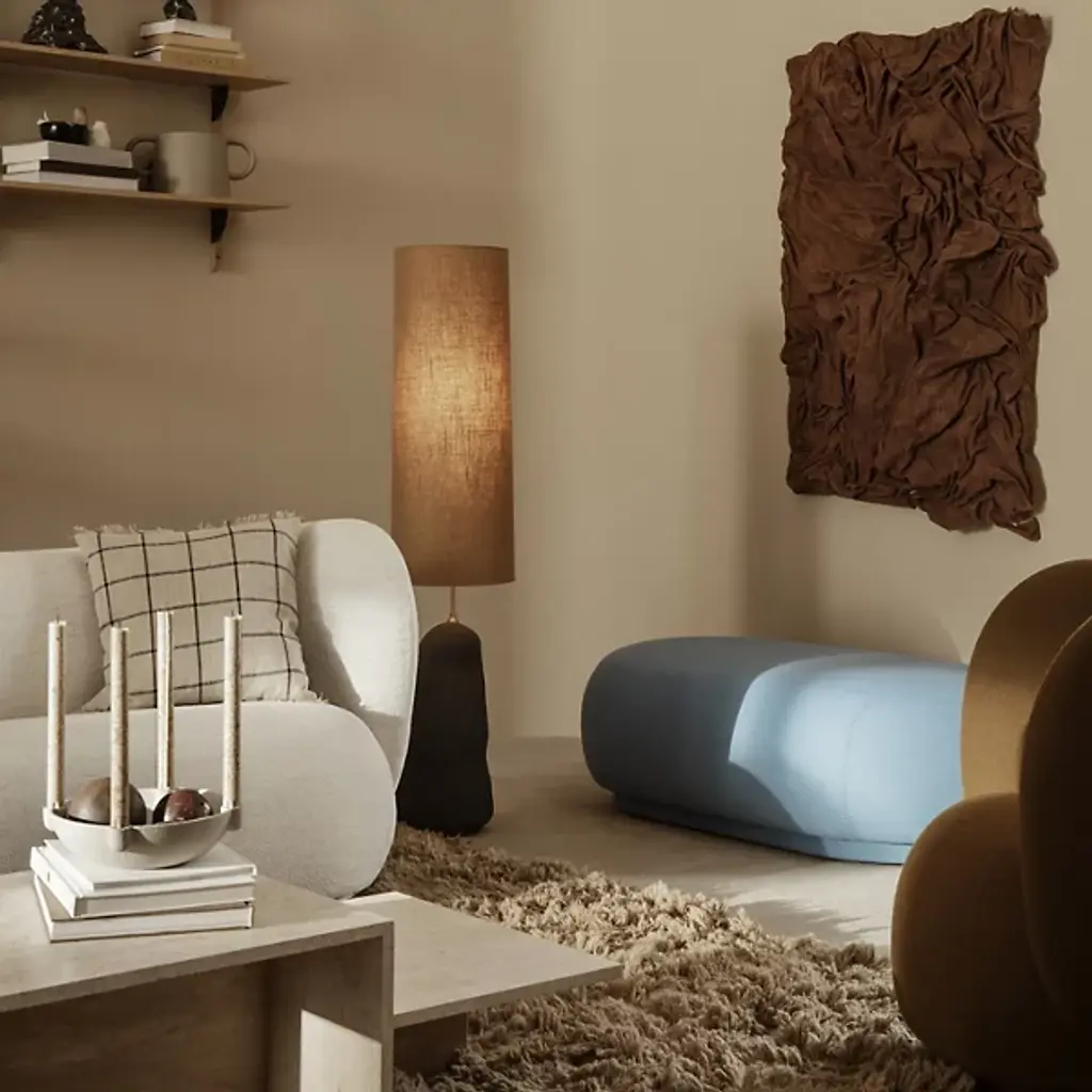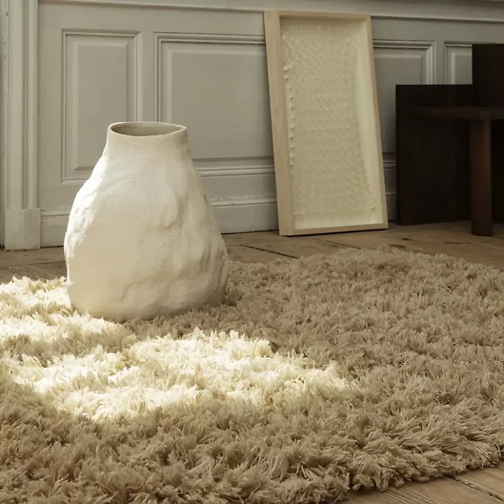 The Meadow Rug from Ferm Living reimagines the '70s shag for today's interiors. Its generous pile creates a micro-landscape of New Zealand wool and traps warmth, making it an ideal companion for cool evenings and chilly mornings. Its natural fibers act as a natural air purifier, catching dust and allergens. The rug's neutral tone allows it to adapt to various color schemes, acting as a soft counterpoint to bold furniture or a plush partner to minimalist decor. In bedrooms, it muffles footsteps for peaceful mornings. In living rooms, it creates a cozy spot for floor-based activities.