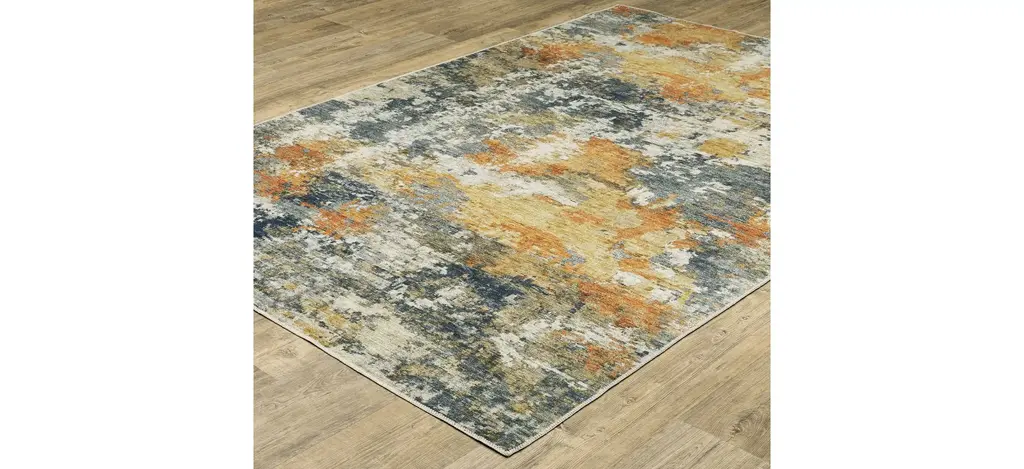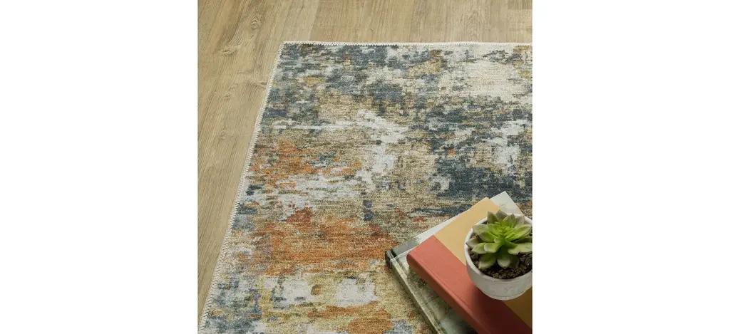 Showcase your creativity and style even in high-traffic areas with the Meagan Area Rug. Suitable for bedroom, living and dining areas, with hues of teal blue, blue, orange, gold, grey and tan. It's also machine washable to stand up to your high-traffic spots too.