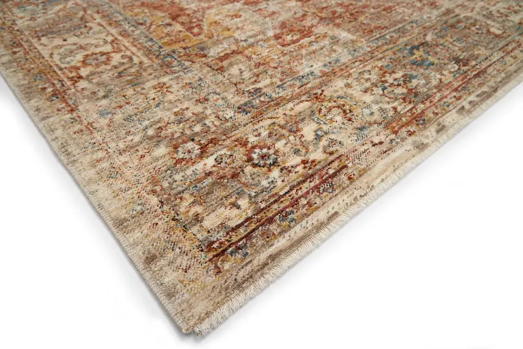 Boasting a distressed central medallion and vine motifs in earthy, desert-inspired shades, our Mecca area rug is the perfect complement to dark wood furniture and neutral décor.
