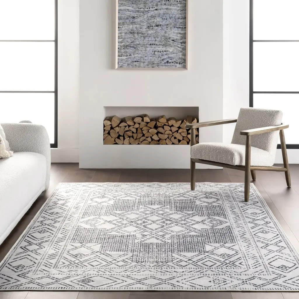 Medallion Spill Proof Washable Rug | Light Grey - 6'