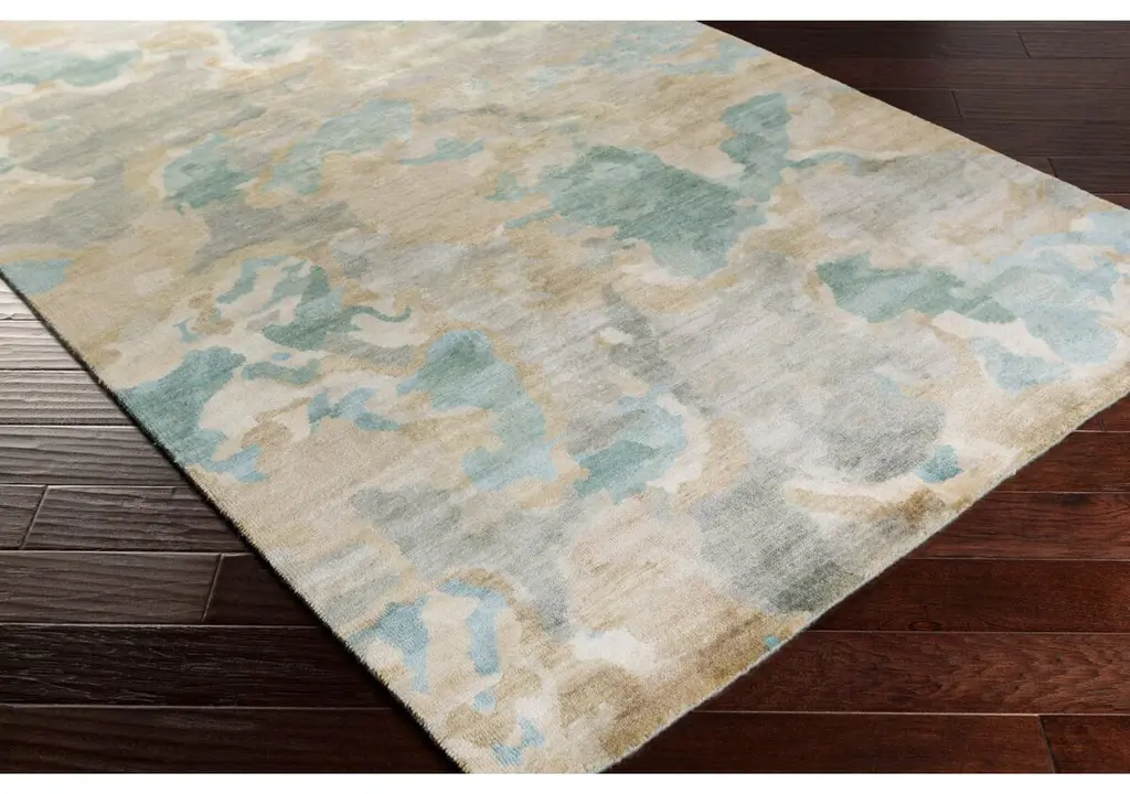 Hand-knotted of wool with silky viscose highlights, this modern painterly rug feels soft underfoot while displaying a subtle sheen. We recommend a rug pad to keep it securely in place.