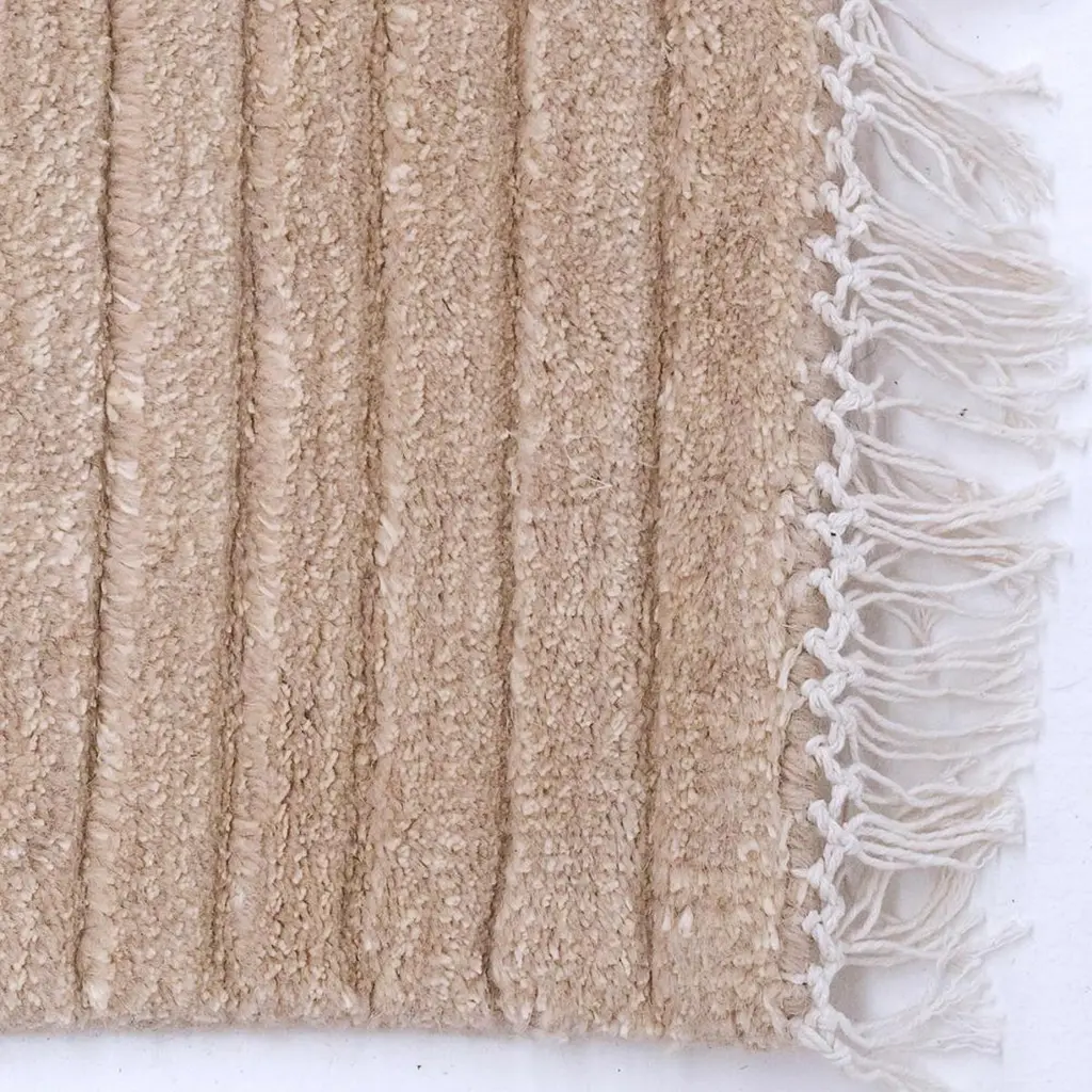 The today weave is simplicity reimagined. Its meditative lines created in rich hand weaved wool, will establish depth and dimension in any space. This calming and timeless style will add the perfect neutral pattern to any interior.All ground control rugs are hand loomed to order, please allow 6-8 weeks for delivery.Available with or without tassels.We are able to approve a 50% deposit to make your rug, with balance prior to delivery.Composition: Wool 75%, cotton 25%.