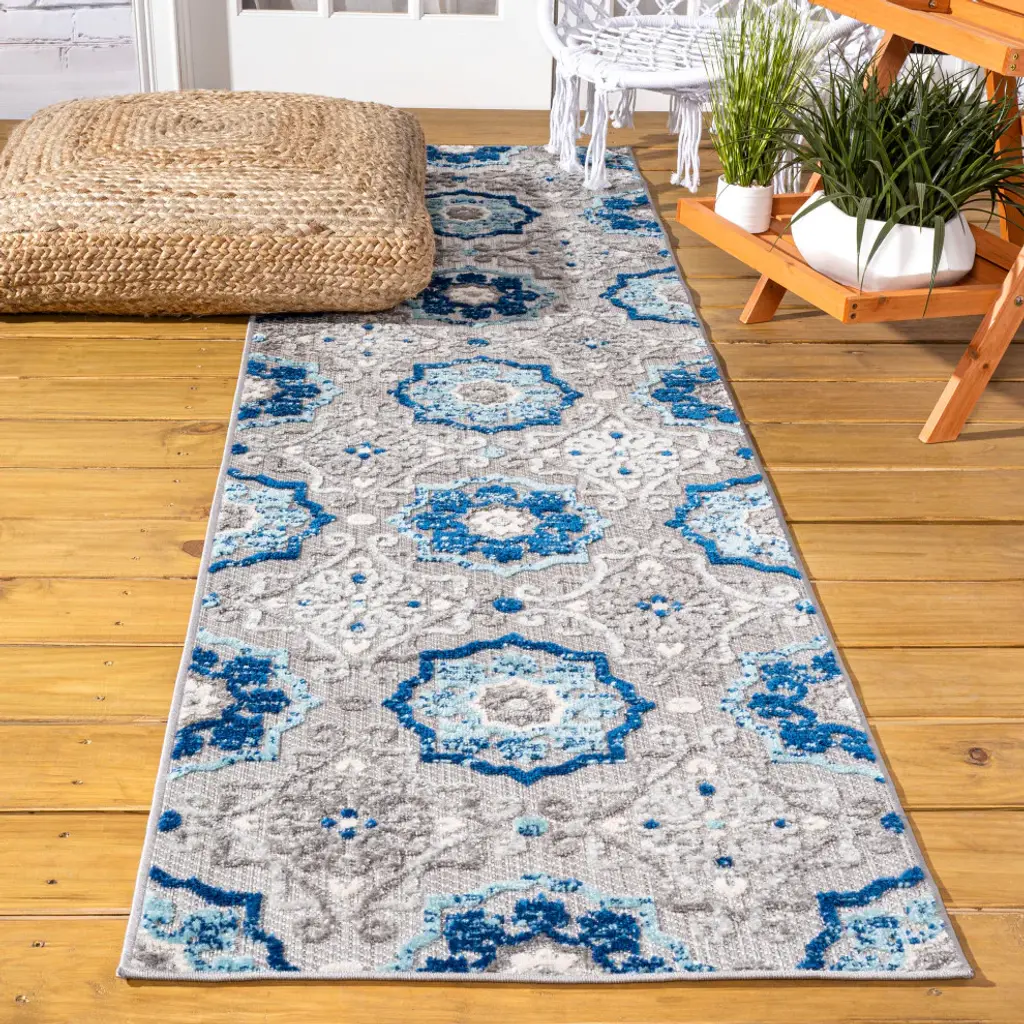 Mediterranean Medallion Indoor/outdoor Area Rug, Blue/gray, 2X10
