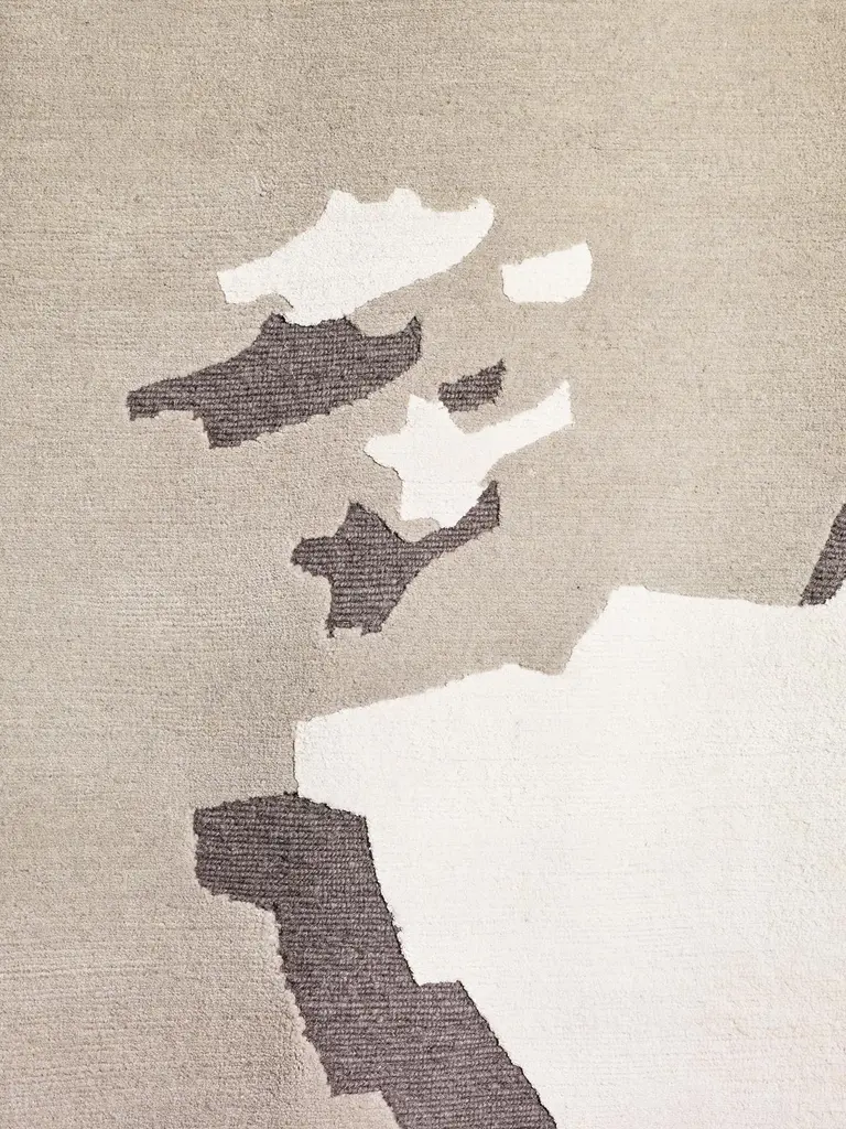 Medium hand knotted "En Suspend" rug, Florian Pretet and Lisa Mukhia PretetMade to order creation can be done, please contact us.Dimensions: 170 x 240 cmMaterials: 90% Himalayan wool, 10% silkHand knotted in Nepal125 knots/inch²Atelier Fe´vrier designs and creates luxury, timeless, statement rugs. They don’t aim to follow any trend but to be the reflection of a genuine everyday life’s inspiration. The signature patterns are richly detailed, highlighted by a one-of-kind color palette and original cut-outs. The designs are the result of a thorough manual process for a natural finish. First being hand-drawn on paper, then scaled-up and hand knotted by expert weavers, the steps involves the combined workforce of around 50 people. Each rug is therefore unique due to its handmade nature.The rugs are made of premium wool from Tibet, known to have a high content of lanolin that protects the rug over time and ages beautifully, and the finest silk from China for added lustre and durability, ensuring the rugs being suitable for personal and public spaces. The average turnaround is minimum of 14 weeks. Fair trade standards and eco-friendly work methods are at the core of Atelier Fe´vrier’s approach. Atelier Février is committed to using 100% natural fibers and dyes, creating ethical work opportunities for those in Nepal and Tibet and promoting traditional Asian craftsmanship.Founders of Atelier Fe´vrier, Florian Pretet and Lisa Mukhia Pretet design together outstanding rugs skilfully hand knotted in Nepal. Their pieces are the epitome of contemporary art fused with traditional craftsmanship.A graduate form the Parisian Fashion School Studio Berc¸ot. Florian Pretet is a French designer who worked several years for a prestigious French fashion brand that led him to Kathmandu. Through Atelier Fe´vrier he breathes life into his drawing, translating them into beautiful design pieces.Born and raised between Darjeeling and Kathmandu, where traditions are the culture’s cornerstone - Lisa Mukhia Pretet is a keen entrepreneur with a strong love for fashion and craft. She lived in Nepal for 15 years where her work experience and her exposure to vernacular techniques, brought forward her fascination for traditional crafts that have been passed along for generations.Real life partners, coming from different cultural and professional background, their association is drawn from those common passions for art, fashion, craft and expertise.