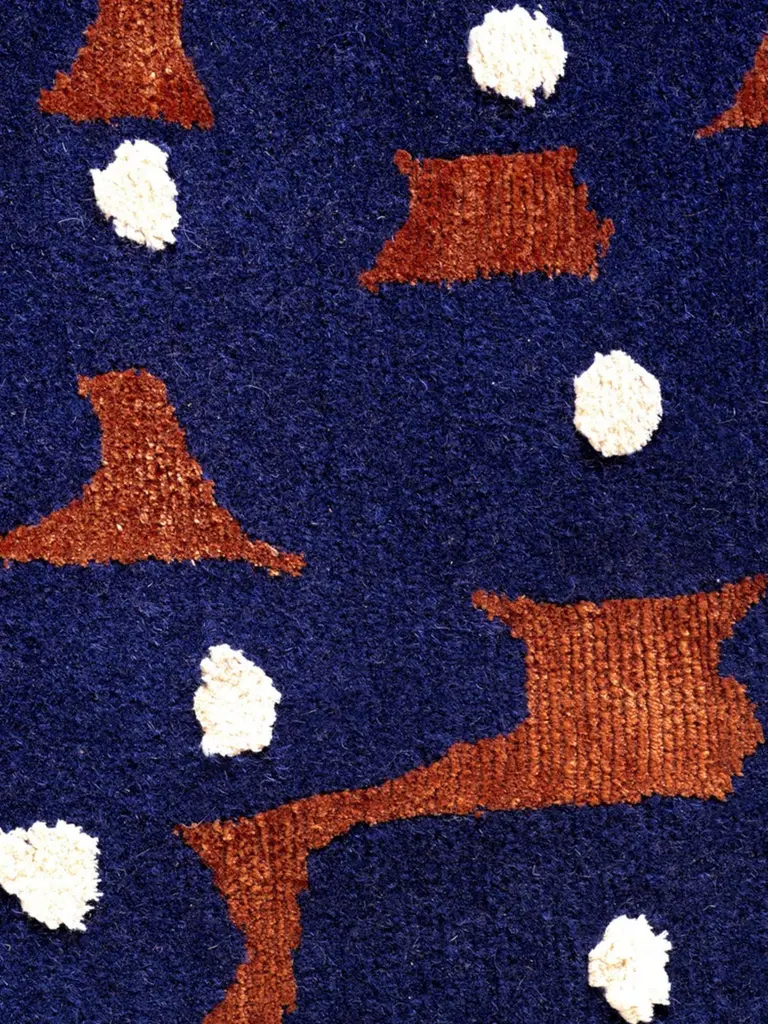 Medium hand knotted Nuèze rug by Florian Pretet and Lisa Mukhia PretetMade to order creation can be done, please contact us.Dimensions : 170 x 240 cmMaterials : 80% Himalayan wool, 20% silkhand knotted in Nepal125 knots/inch²Atelier Fe´vrier designs and creates luxury, timeless, statement rugs. They don’t aim to follow any trend but to be the reflection of a genuine everyday life’s inspiration. The signature patterns are richly detailed, highlighted by a one of kind color palette and original cut-outs. The designs are the result of a thorough manual process for a natural finish. First being hand-drawn on paper, then scaled-up and hand knotted by expert weavers, the steps involves the combined workforce of around 50 people. Each rug is therefore unique due to its handmade nature.The rugs are made of premium wool from Tibet, known to have a high content of lanolin that protects the rug over time and ages beautifully, and the finest silk from China for added lustre and durability, ensuring the rugs being suitable for personal and public spaces. The average turnaround is minimum of 14 weeks. Fair trade standards and eco-friendly work methods are at the core of Atelier Fe´vrier’s approach. Atelier Février is committed to using 100% natural fibers and dyes, creating ethical work opportunities for those in Nepal and Tibet and promoting traditional Asian craftsmanship.Founders of Atelier Fe´vrier, Florian Pretet and Lisa Mukhia Pretet design together outstanding rugs skillfully hand knotted in Nepal. Their pieces are the epitome of contemporary art fused with traditional craftsmanship.A graduate form the Parisian Fashion School Studio Berc¸ot. Florian Pretet is a French designer who worked several years for a prestigious French fashion brand that led him to Kathmandu. Through Atelier Fe´vrier he breathes life into his drawing, translating them into beautiful design pieces.Born and raised between Darjeeling and Kathmandu, where traditions are the culture’s cornerstone - Lisa Mukhia Pretet is a keen entrepreneur with a strong love for fashion and craft. She lived in Nepal for 15 years where her work experience and her exposure to vernacular techniques, brought forward her fascination for traditional crafts that have been passed along for generations.Real life partners, coming from different cultural and professional background, their association is drawn from those common passions for art, fashion, craft and expertise.