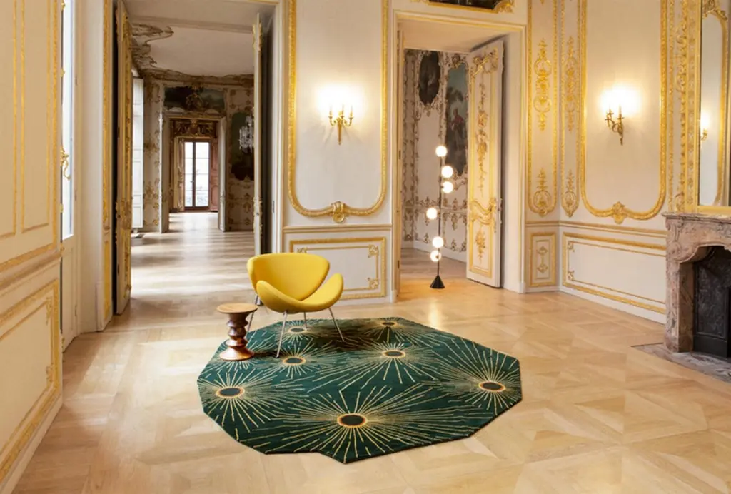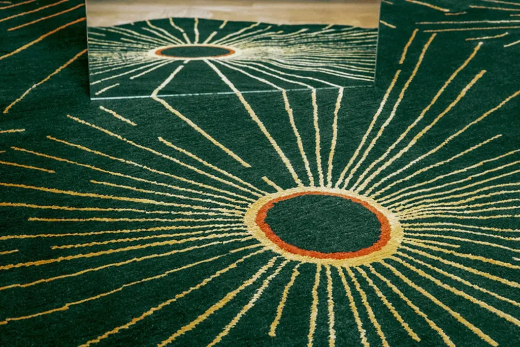 Medium hand knotted "Surya" rug - Florian Pretet and Lisa Mukhia PretetDimensions: 170 x 240 cm Materials: 75% Himalayan wool, 25% silkHand knotted in Nepal150 knots/inch²Made to order creation can be doneAtelier Fe´vrier designs and creates luxury, timeless, statement rugs. They don’t aim to follow any trend but to be the reflection of a genuine everyday life’s inspiration. The signature patterns are richly detailed, highlighted by a one-of-kind color palette and original cut-outs. The designs are the result of a thorough manual process for a natural finish. First being hand-drawn on paper, then scaled-up and hand knotted by expert weavers, the steps involves the combined workforce of around 50 people. Each rug is therefore unique due to its handmade nature.The rugs are made of premium wool from Tibet - known to have a high content of lanolin that protects the rug over time and ages beautifully - and the finest silk from China for added lustre and durability, ensuring the rugs being suitable for personal and public spaces. The average turnaround is minimum of 14 weeks.Fair trade standards and eco-friendly work methods are at the core of Atelier Fe´vrier’s approach. Atelier Février is committed to using 100% natural fibers and dyes, creating ethical work opportunities for those in Nepal and Tibet and promoting traditional Asian craftsmanship.Founders of Atelier Fe´vrier, Florian Pretet and Lisa Mukhia Pretet design together outstanding rugs skillfully hand knotted in Nepal. Their pieces are the epitome of contemporary art fused with traditional craftsmanship.A graduate form the Parisian Fashion School Studio Berc¸ot. Florian Pretet is a French designer who worked several years for a prestigious French fashion brand that led him to Kathmandu. Through Atelier Fe´vrier he breathes life into his drawing, translating them into beautiful design pieces.Born and raised between Darjeeling and Kathmandu - where traditions are the culture’s cornerstone - Lisa Mukhia Pretet is a keen entrepreneur with a strong love for fashion and Craft. She lived in Nepal for 15 years where her work experience and her exposure to vernacular techniques, brought forward her fascination for traditional crafts that have been passed along for generations.Real life partners, coming from different cultural and professional background, their association is drawn from those common passions for art, fashion, craft and expertise.