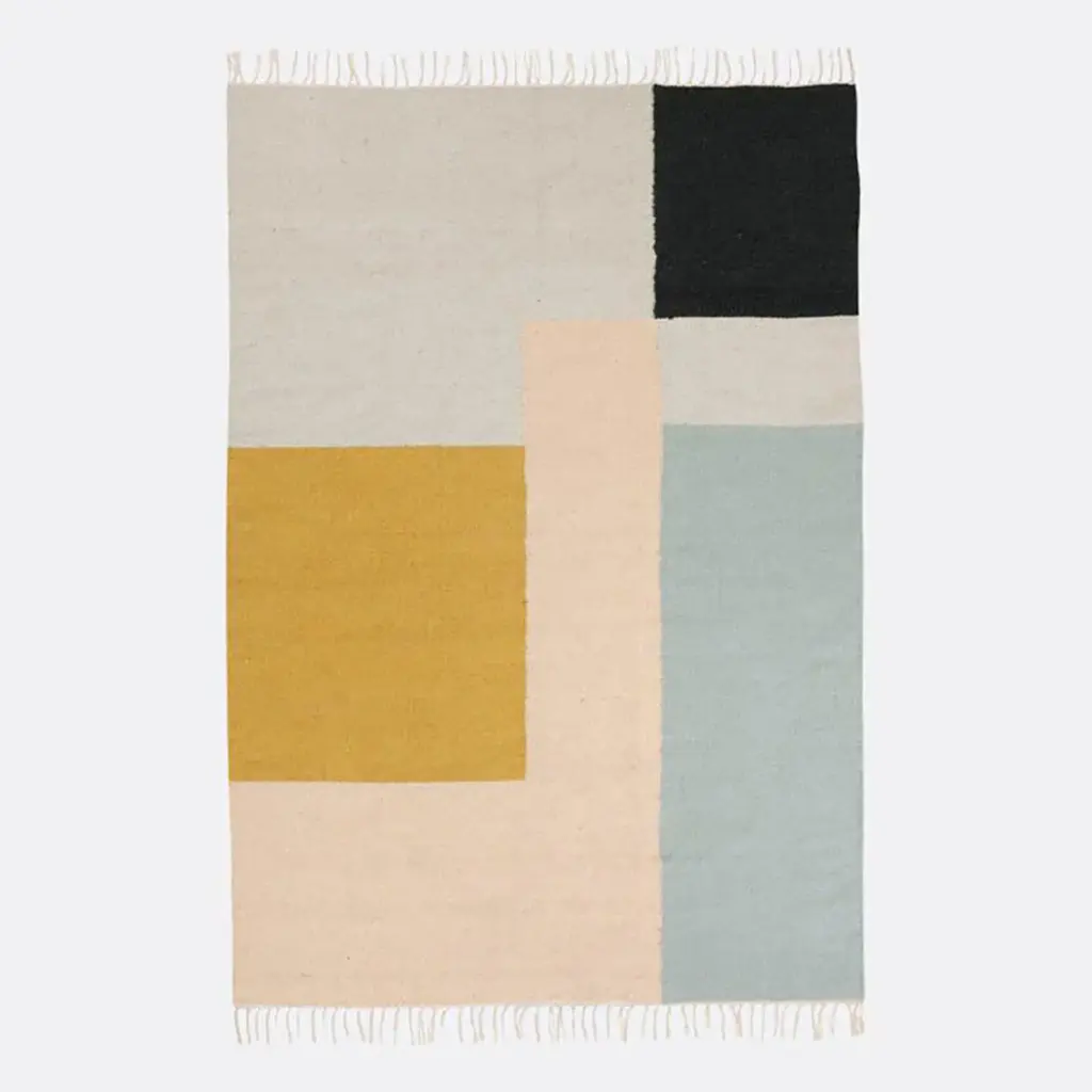 'Mélange Color 1' Hand-Loomed Rug by Sybilla for Nanimarquina.Executed in 100% hand-loomed Afghan wool. 'Me´lange' is the perfect combination of tradition and modernity, craft and design, past and future. Its simplification of classic motifs such as geometric patterns and a pared color palette make it a contemporary version of the Kilim; at the same time it upholds the ancestral handcrafted techniques of Pakistan.With roots in fashion design, Sybilla effortlessly translates her unique vision to this expansive collection for Nanimarquina.Price is per item. Available in unlimited quantities in two standard sizes. This listing is for the smaller sized rug. Other patterns also available; please inquire for more information.In-stock lead time 2-3 weeks. Out of stock or custom sizing can add additional 12 weeks or more. Stock availability subject to change at any time. For time-sensitive orders, kindly inquire prior to purchasing.Made to order. All sales are final.Please note that due to the organic and handmade nature of this fiber some variation in color may occur from piece to piece, which may become further pronounced with prolonged exposure to sunlight.Also note this item must ship directly from Nanimarquina’s fulfillment center, so 1st Dibs arranged shipping and local pick-up are not an option. Shipping cost quoted is per item and cannot be combined.