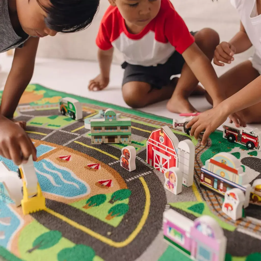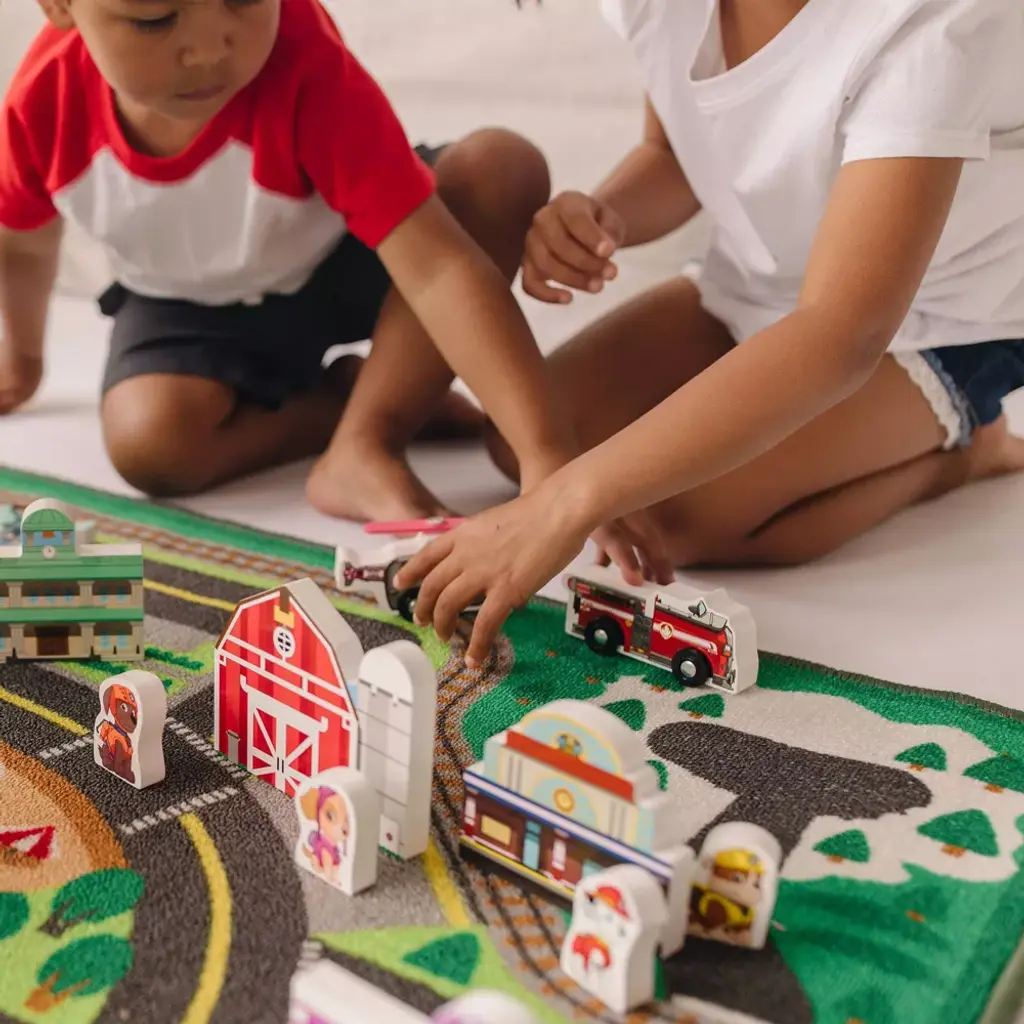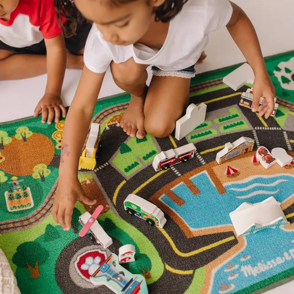 PAW Patrol™ is on a roll and ready for adventure with this soft and sturdy activity rug! Kids three and older can set up their own Adventure Bay and create countless missions with 21 wooden play figures, buildings, a bridge, and vehicles. The 44-inch by 26-inch rug is made from durable material that’s machine washable. The skid-proof backing is safe on all floor surfaces, and a reinforced border binding prevents fraying. The extra-large format is big enough for multiple kids and lots of vehicles and play pieces for storytelling fun! PAW Patrol™ is always ready to help, inspiring preschoolers with a blend of teamwork, adventure, and humor as they develop social, emotional, and developmental skills through play.