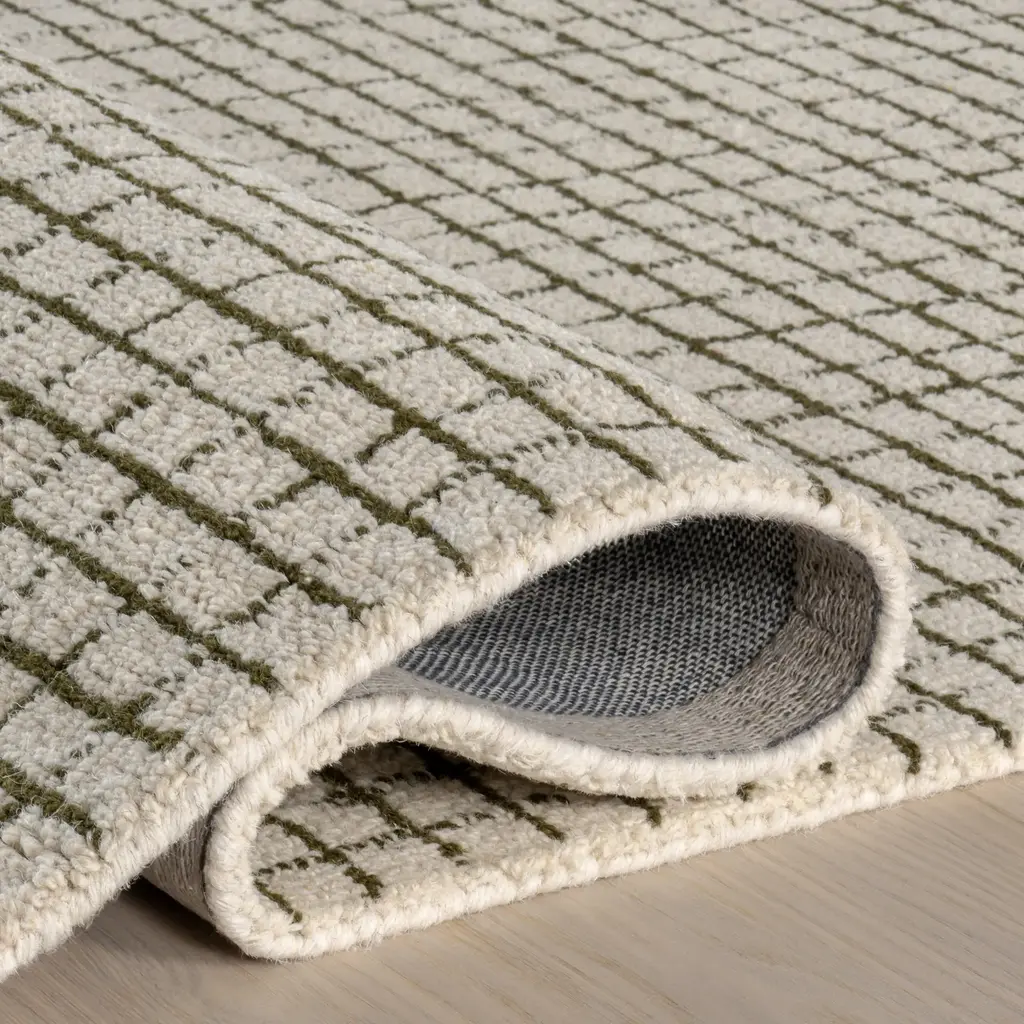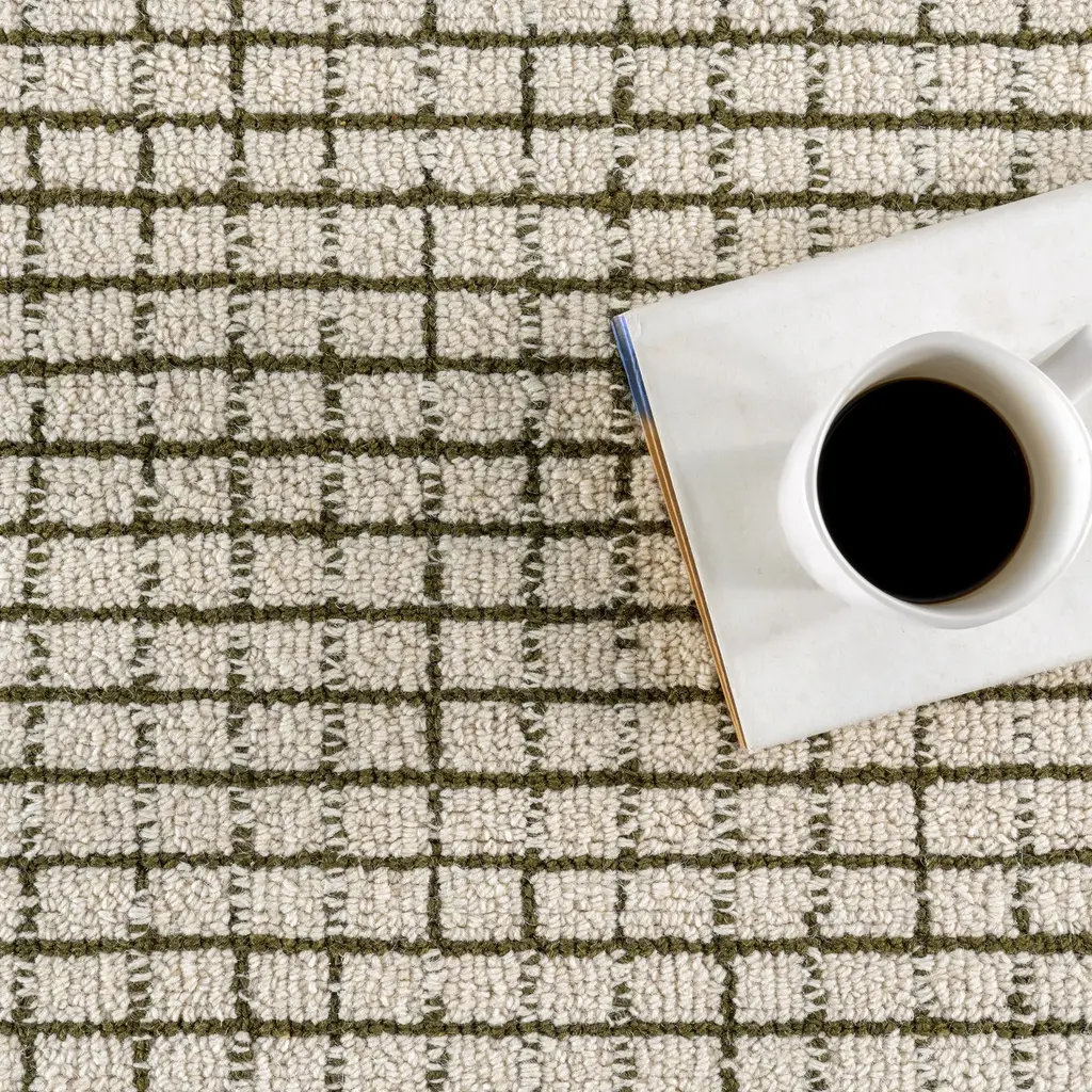 Melrose Checked Rug | Green - 2' 6" X 8'
