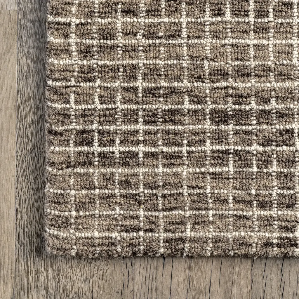 Melrose Checked Wool Area Rug, Brown 8'x10'