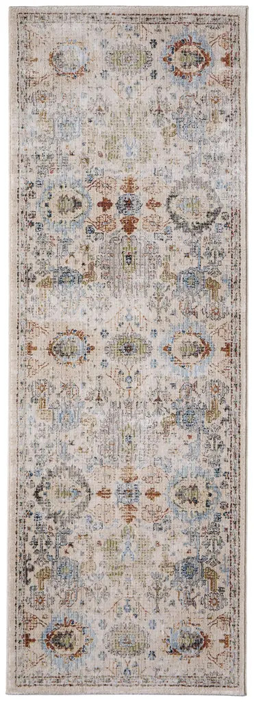 Collection: Melrose Colors: Tan, Blue, Red Construction: Machine Made Material: Face: Polypropylene, Polyester, Viscose / Warp: Cotton Pile: Low Pile Pile Height: 0.47" Styles: Traditional,Persian Backing: Cotton Made In: Turkey Thickness: 0.47" Price Range: $$$$$ (Affordable)