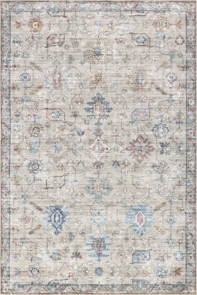 Melrose Traditional Floral & Botanical - Tan/blue/red Area Rug - 6'7" X 9'6" Rectangle