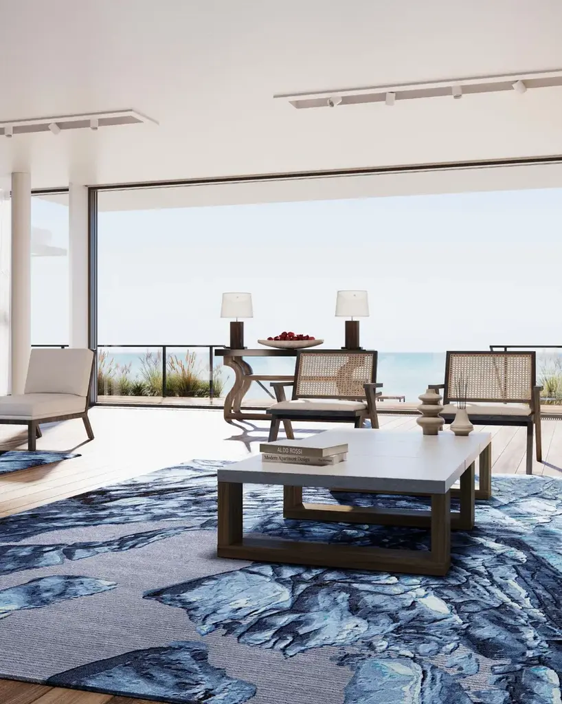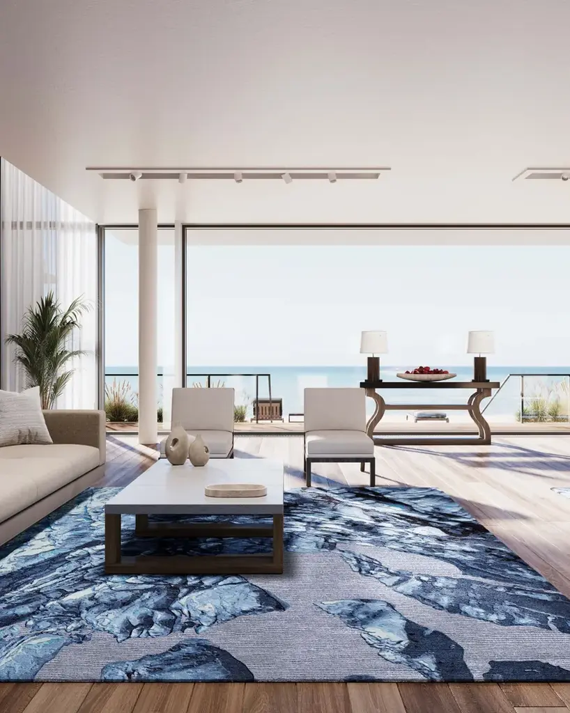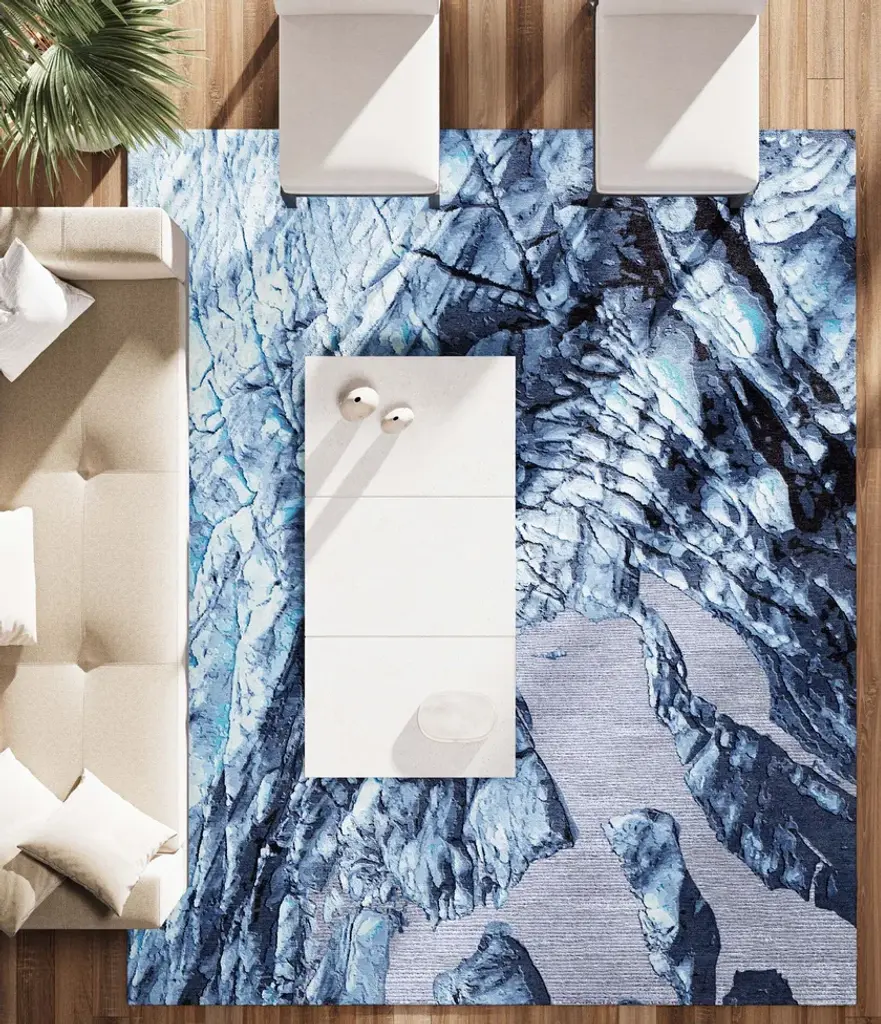 Material: Wool, Bamboo SilkPile Height: 5 - 10mmTechnique: Hand-tuftedCustom sizes and colors on requestThe pristine landscapes of Iceland, details of grounds and mosses observed in a journey from the macro to the micro, inspired the Planet Earth collection. The sampling of organic textures and patterns, as preserved in their inviolability over the years, has made it possible to carefully reproduce the soft appearance, the complexity of nuances, and the overlapping colors of natural surfaces. Meltin Glacier hyper realistic design contains 83% wool and 17% bamboo silk. The technique used is hand-tufting, which allows us to create volumes with different pile heights from 5 to 10 mm using natural and plant fibers.Planet Earth is a tribute to nature's strength and fragility; aerial views become dynamic and abstract motifs when viewed up close. The size and rectangular shapes of the Planet Earth rugs are available in the standard proportions of 250x300cm but can be customized upon request.