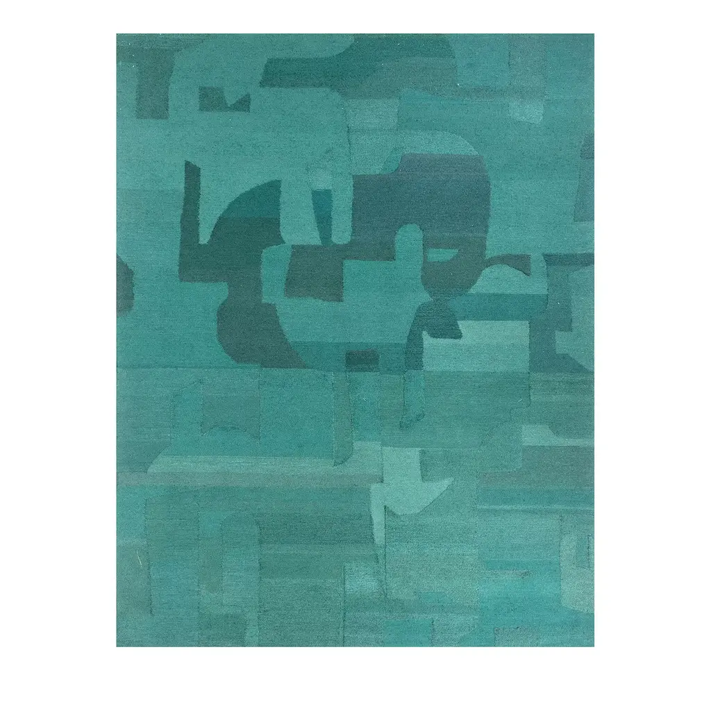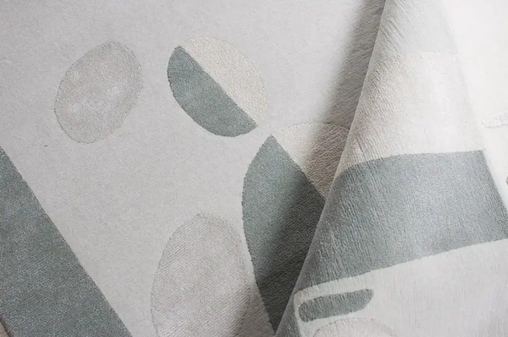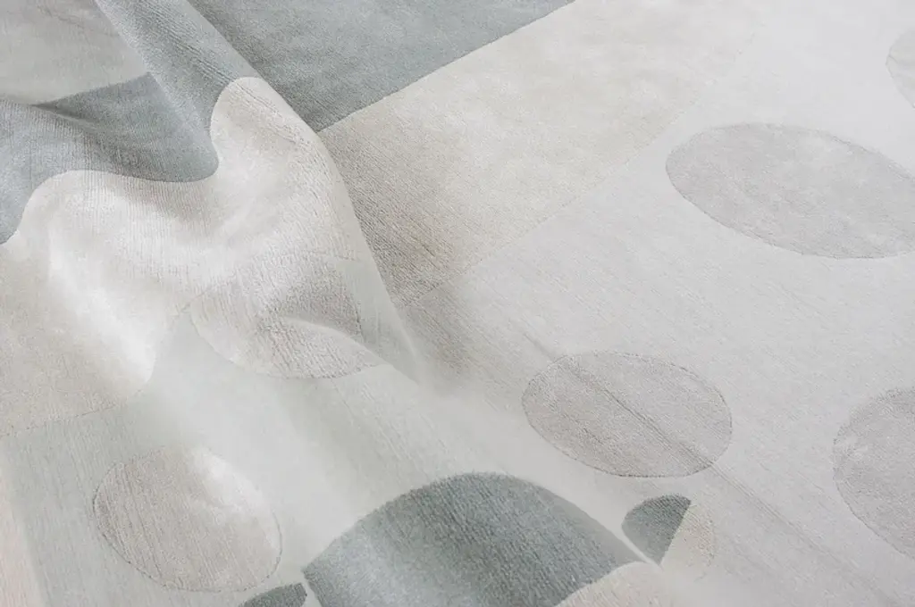 Men is a hand-knotted rug in wool and silk.The Ambiance Collection was born from a travel journal, notes of textures, colors, and materials, of which the imprint in memory slowly fades, synthesizes, and crystallizes into new forms. These hand-knotted rugs are made from high-quality silk and New Zealand wool and feature graphic lines and geometric patterns playing on different levels of contrast to add a dynamic touch. The collection is available in rectangular shapes and four standard sizes; the color combination includes warm, pastel, and neutral tones, making it easy to find the perfect match for every interior design project.