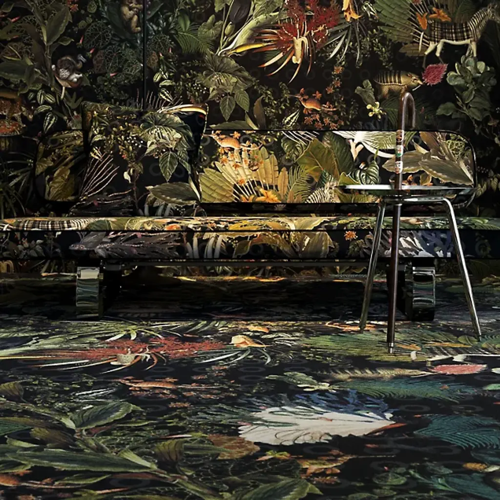 Whimsical and mesmerizing. The Menagerie of Extinct Animals Area Rug is a playful piece of luxury furnishing from Moooi Carpets. Featuring a celebration of extinct flora and fauna, the eyes will dance along every inch of this beautiful piece. From species ranging from the Blushing Sloth to the Calligraphy Bird, it brings to life what once was, and reminds us to treasure and preserve what still is.