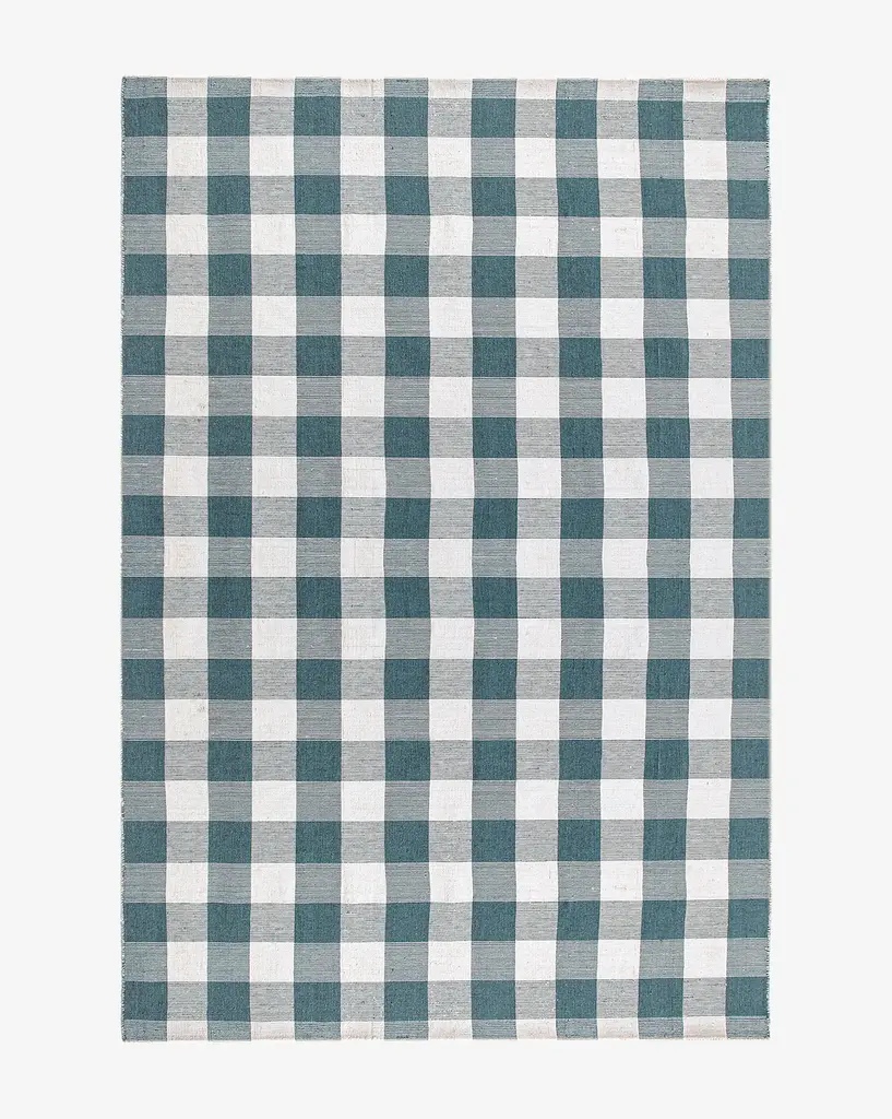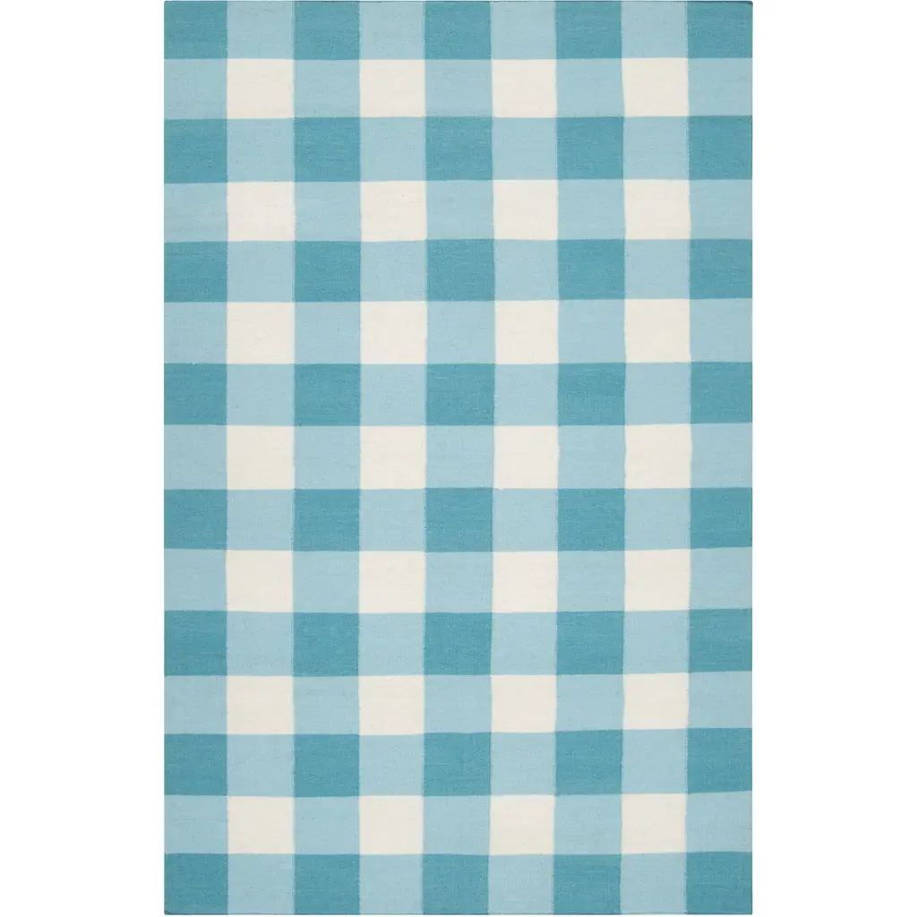 Meris Aqua Blue Plaid Area Rug - 6'7" X 9' Rectangle