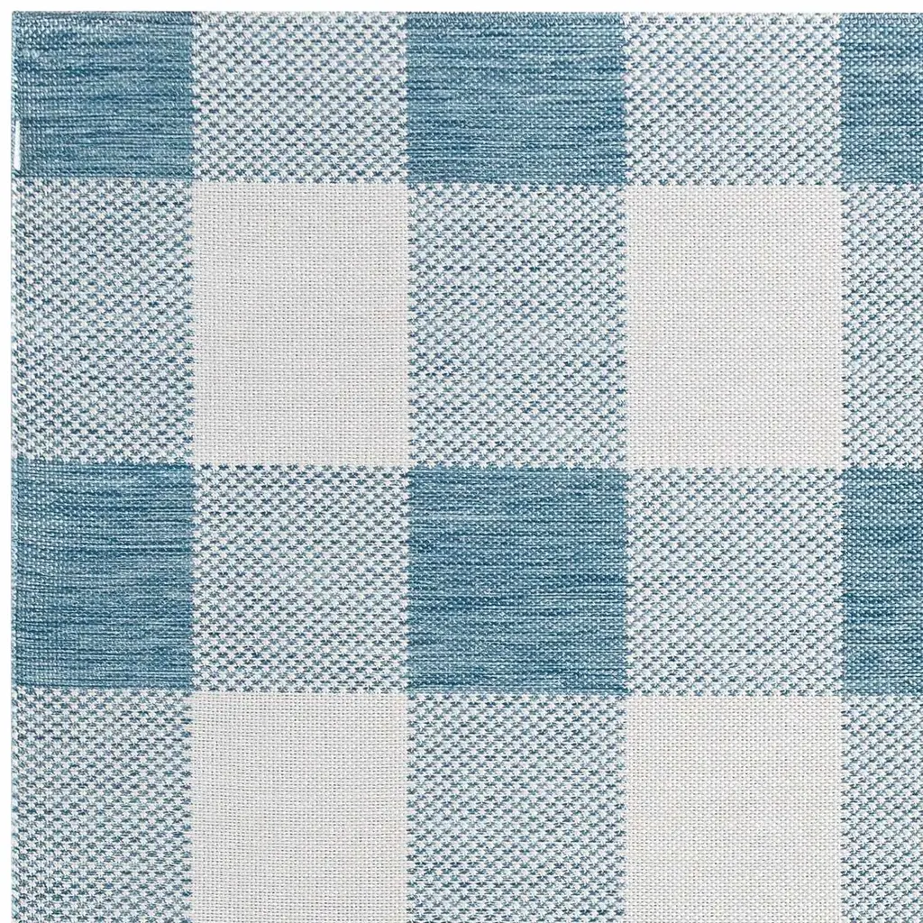 Collection: Meris Colors: Pale Blue, Off White Construction: Machine Woven Material: Face: 100% Polypropylene / Warp: 100% Polypropylene Pile: No Pile Styles: Coastal,Checkered,Geometric Outdoor Safe: Yes Made In: Turkey Thickness: 0.2" Price Range: $$$$$ (Most Affordable)