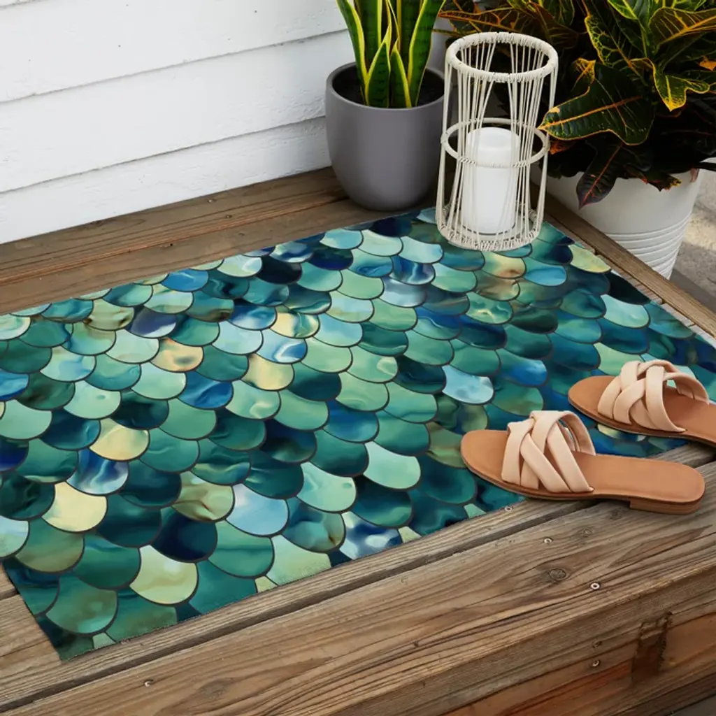 Mermaid Art, Sea Green, Ocean Blue Outdoor Rug