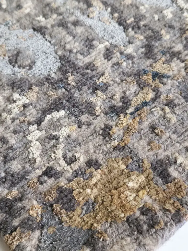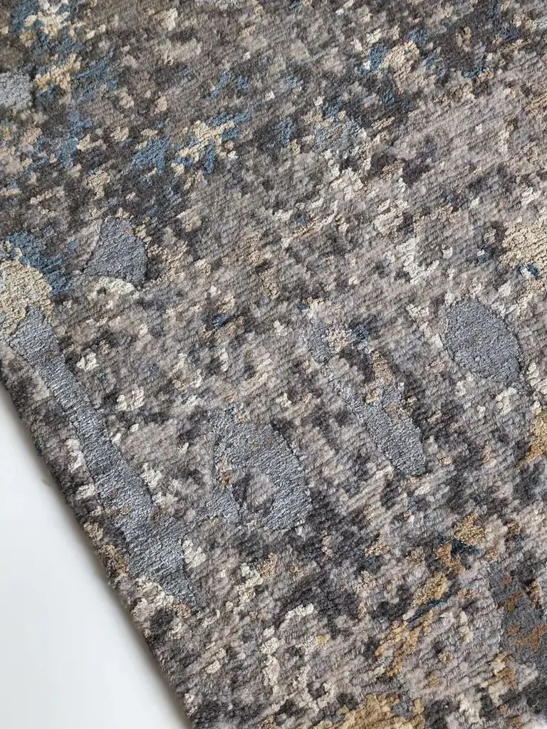 Material: Wool, Blend SilkKnot Density: 100 knots/inch²Pile Height: 3 - 5mmTechnique: Hand-knottedCustom sizes and colors on requestThe Himalaya collection is inspired by the surface of the rocky mountains, the crumbly texture, and the complex palette that develops over multiple natural layers. Each rug is handwoven by skilled artisans using the finest materials, resulting in unique and durable pieces.In creating the patterns, Tapis Rouge emulated the texture and the complex color palette of the raw inspiration material, combining different pile heights and loop' types with a 100 knots/inch² knot density.The rug Kuninda Kingdom is made of 90 % wool and 10% blend silk; the pile height is 5mm.