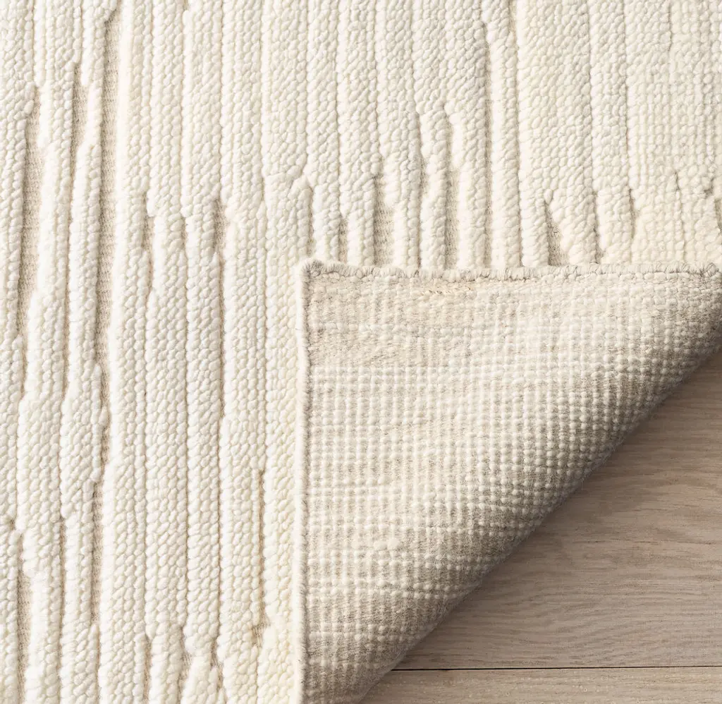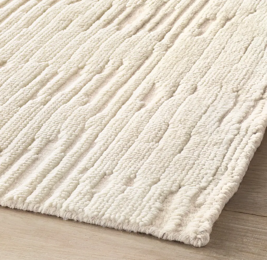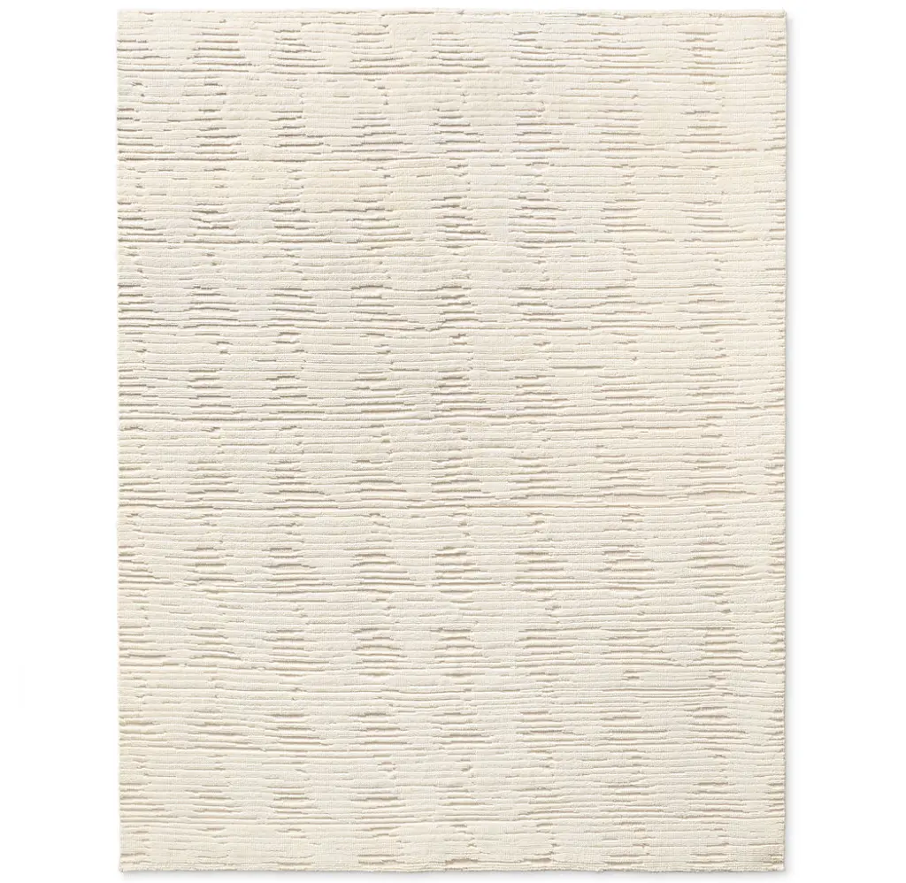 Meryem's etched pattern and tonal texture add understated luxury to the contemporary design. Expertly hand-knotted in New Zealand wool, the pile is artfully cut to a high-low finish that adds rich variation and subtle highlights.