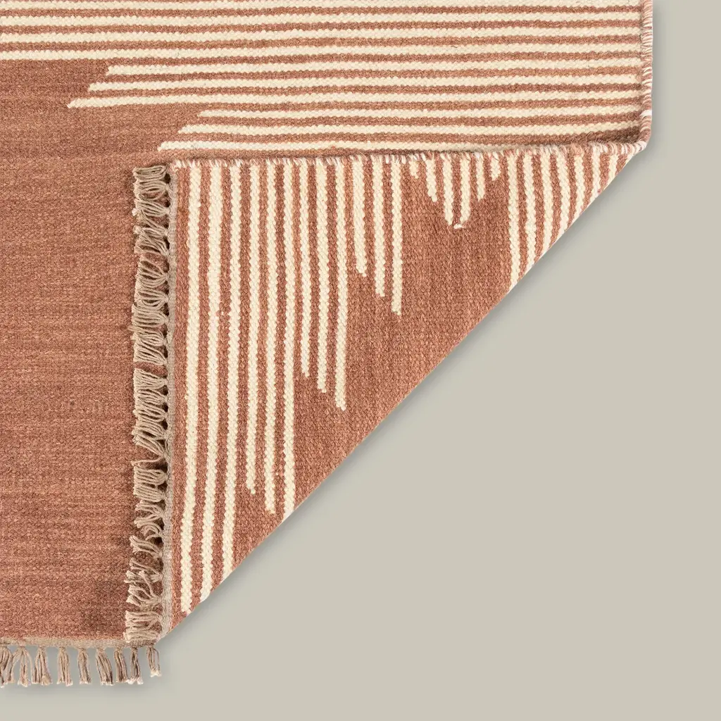 Imbued with a sense of movement, the Metlili Collection nods to the glorious imperfection found in all handcrafted textiles. Handwoven out of wool and finished with an antique wash that mutes colors and ages the material, each pattern has a vintage feel. More interesting than perfect, the irregularities in their lines feel playful and experimental.