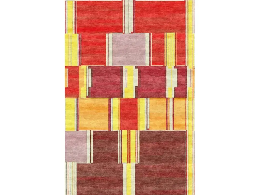 Metropolis 1 is a rectangular wool rug.Zollanvari Fine Gabbehs.Persian Gabbehs often depict rural and city landscapes in a naïf and stylised form. Metropolis adds the abstract aspect… solid blocks of colour – rectangles and squares of different sizes seemingly randomly placed but creating a sense of perspective. The glitch effect creates the sense of three-dimensionality. The extensive use of abrash generates palpable textures. This is a modern metropolis, hard-edged, cladded facades, there is nothing naïf or ornamental here.The inspiration for this latest collection is an ingenious fusion of traditional Gabbeh iconography and Glitch art – a visual style characterised by using digital or analogue errors for aesthetic purposes, whether that be intentional (that is, “faking glitch” and obtaining a similar aesthetic through design) or by accident (a true manifestation inside of the system without human intervention). The term “glitch” itself originates with engineers and astronauts to explain faults within the technology they were working with. But the visual aesthetic can be traced much further back, to the beginning of the 20th century through distorted forms in cubist paintings, abstract short films and pixel-like rug designs akin to 8-bit video game landscapes. In fact, many antique rugs feature abstract, distorted patterns that seem to predict the glitch movement of later centuries. This new collection, including its marketing and sales, will set off a new Gabbeh revolution. The designs are available in custom and bespoke sizes and colours.