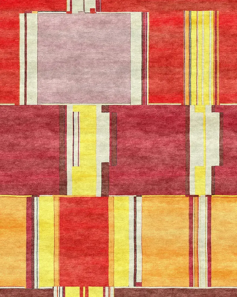 Metropolis 4 is a rectangular wool rug.Zollanvari Fine Gabbehs.Persian Gabbehs often depict rural and city landscapes in a naïf and stylised form. Metropolis adds the abstract aspect… solid blocks of colour – rectangles and squares of different sizes seemingly randomly placed but creating a sense of perspective. The glitch effect creates the sense of three-dimensionality. The extensive use of abrash generates palpable textures. This is a modern metropolis, hard-edged, cladded facades, there is nothing naïf or ornamental here.The inspiration for this latest collection is an ingenious fusion of traditional Gabbeh iconography and Glitch art – a visual style characterised by using digital or analogue errors for aesthetic purposes, whether that be intentional (that is, “faking glitch” and obtaining a similar aesthetic through design) or by accident (a true manifestation inside of the system without human intervention). The term “glitch” itself originates with engineers and astronauts to explain faults within the technology they were working with. But the visual aesthetic can be traced much further back, to the beginning of the 20th century through distorted forms in cubist paintings, abstract short films and pixel-like rug designs akin to 8-bit video game landscapes. In fact, many antique rugs feature abstract, distorted patterns that seem to predict the glitch movement of later centuries. This new collection, including its marketing and sales, will set off a new Gabbeh revolution. The designs are available in custom and bespoke sizes and colours.