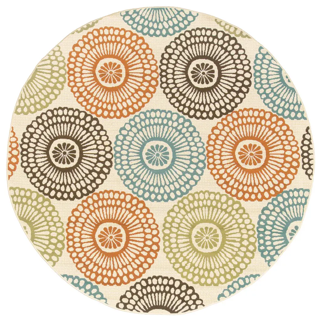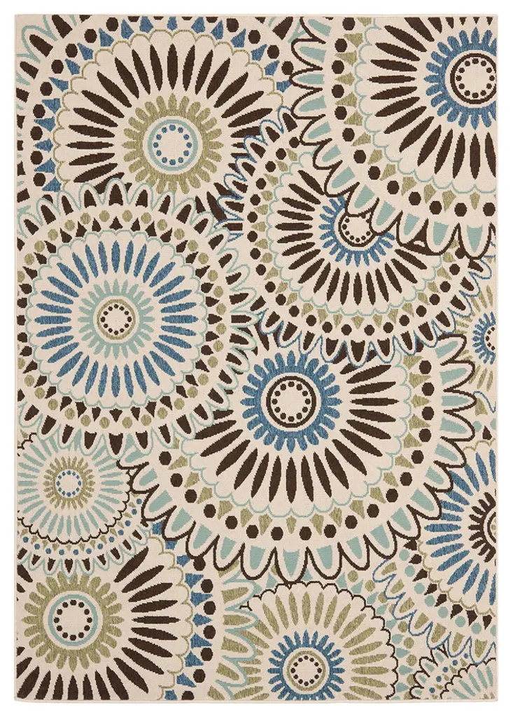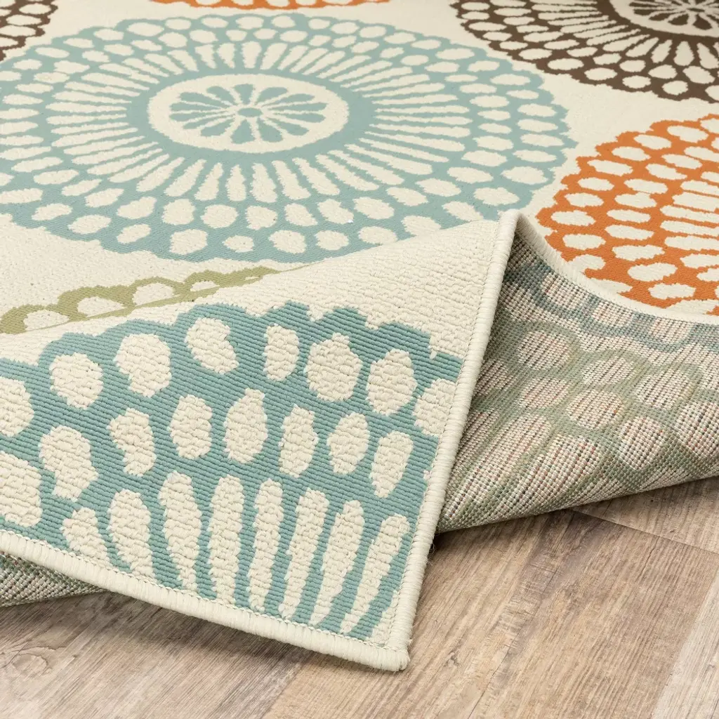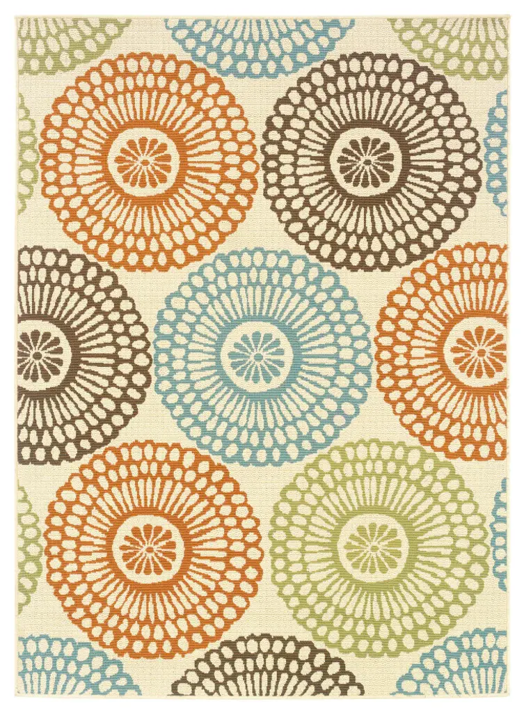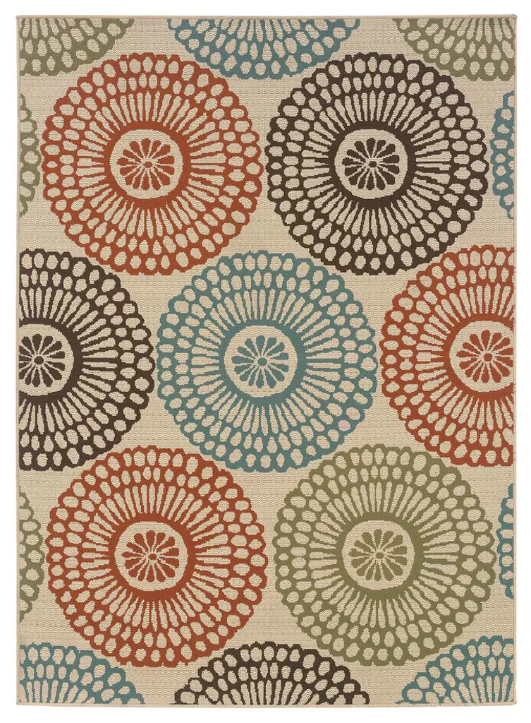 Bring a pop of color to your abode with this Mia Floating Medallion Patio Rug. Showcasing a pattern of printed multicolor medallions against a beige backdrop, this patio accent rug is the perfect way to protect your floors while offering a timeless style upgrade. This printed patio rug is made from fade-, weather- and stain-resistant fabric that allows for long-term use, and it easily blends with most decor styles. Simply toss this accent rug on the floor of your patio or entryway hallway for a functional and stylish update.