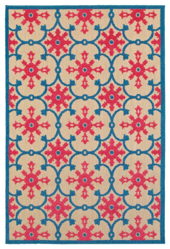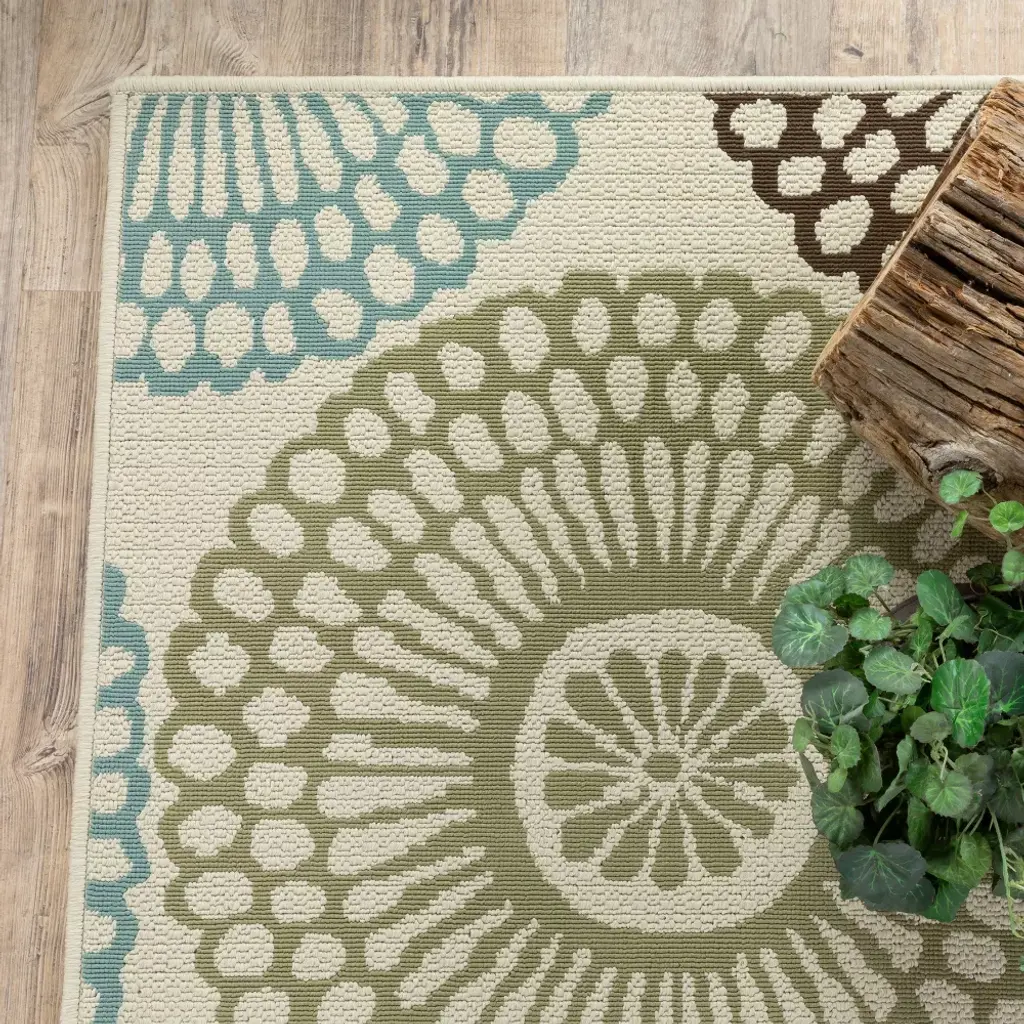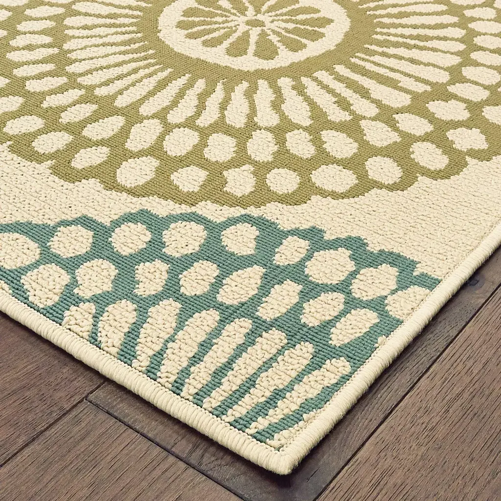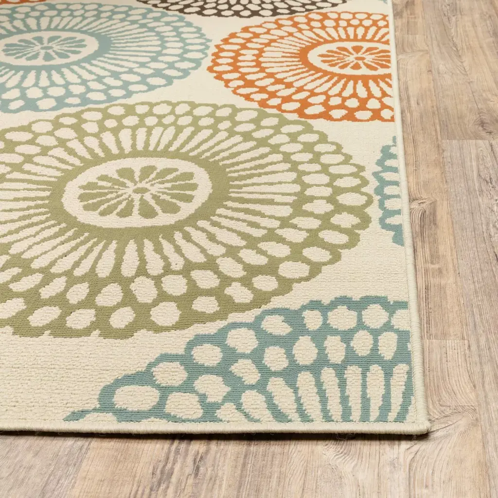 Bring a pop of color to your abode with this Mia Floating Medallion Patio Rug. Showcasing a pattern of printed multicolor medallions against a beige backdrop, this patio accent rug is the perfect way to protect your floors while offering a timeless style upgrade. This printed patio rug is made from fade-, weather- and stain-resistant fabric that allows for long-term use, and it easily blends with most decor styles. Simply toss this accent rug on the floor of your patio or entryway hallway for a functional and stylish update.